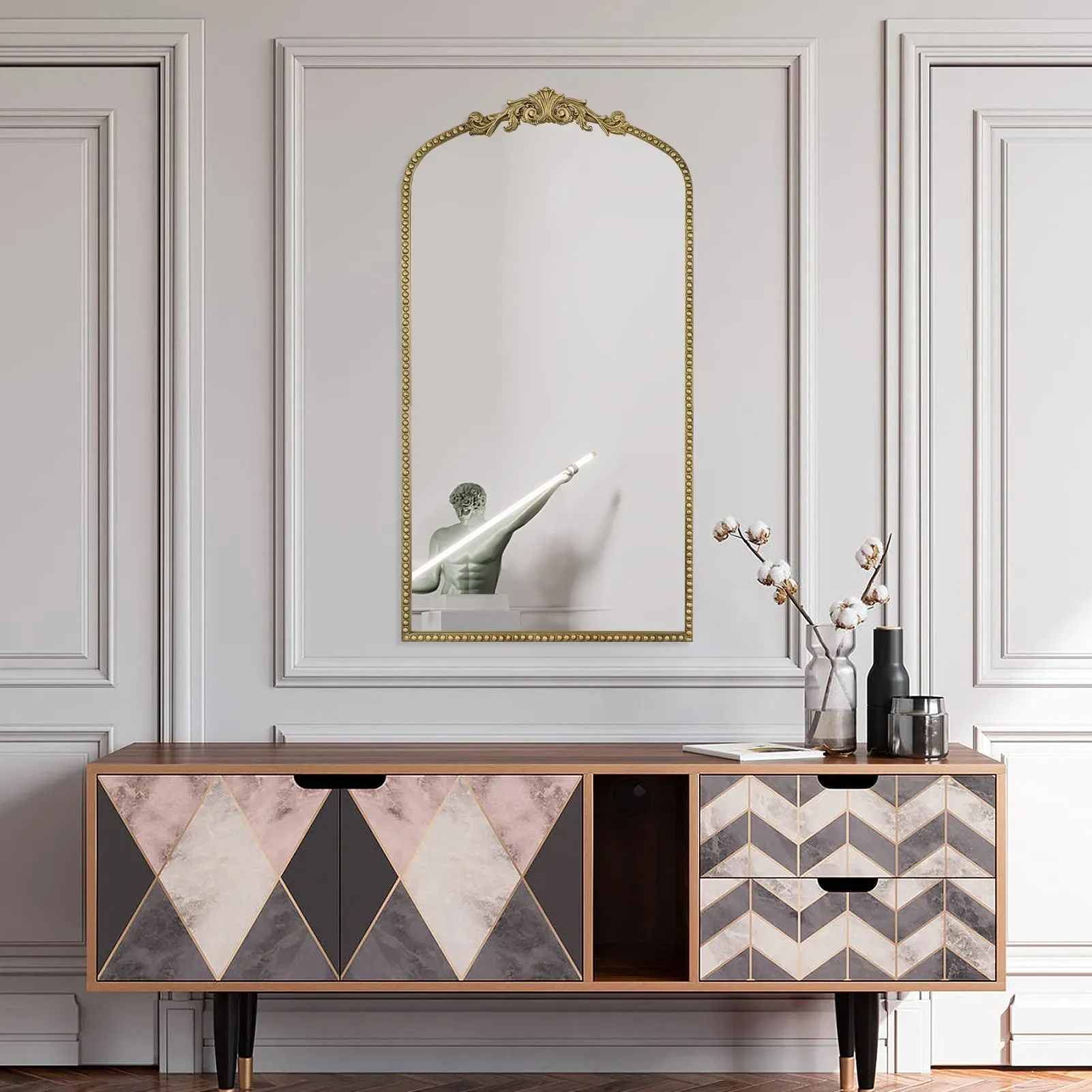 Kategorie: Spiegel - G-LEAF - VINTAGE ORNATE MIRROR FRAME Der Wandspiegel verfügt über einen verschnörkelten Metallrahmen im barocken Stil, geschnitzte elegante Kranz-Overlay und Bogen, das Hinzufügen einiger traditionellen Charme zu Ihrem Haus Dekor. Macht ein elegantes Mittelstück oder Display-Akzent HOCHWERTIGER WANDSPIEGEL Der 19 x 31 Zoll Vintage-Spiegelrahmen ist aus hochwertigem Metall, Gusseisen Vintage gravierte Muster, handpoliert, um den Vintage gewölbten großen Wandspiegel glatt und flach zu machen. Der Metallrahmen trägt nicht nur zur ästhetik bei, sondern ist auch stark, rostbeständig und widersteht dem Verziehen, wodurch die gewölbte Wandspiegeloberfläche weniger anfällig für Schäden ist. HIGH DEFINITION MIRROR Der barocke gewölbte Spiegel verwendet hochauflösendes explosionssicheres Glas, vermeidet Verformung, bietet klare, unverzerrte Reflexionen, reflektiert effektiv natürliches oder künstliches Licht in den Raum, hilft, den Raum zu beleuchten, in Visuell erweitern den Raum. Easy to INSTALL HANGING Stabile Metallhaken ermöglichen eine bequeme Aufhängung des gebogenen Spiegels, und Montagematerial ist im Lieferumfang enthalten. Die Montageoptionen sind hängend oder an einer Wand, so dass Sie den Spiegel auch auf einer Kommode, einem Kamin oder einer Konsole platzieren können. (HINWEIS: Der Spiegel ist schwer und muss mit Ihrer Familie installiert werden, um die Sicherheit zu gewährleisten) HOME DECOR GIFT Der Arendahl Wandspiegel ist das perfekte ... Dieser größere, prunkvolle Spiegel bietet ein luxuriöses Barock-Design mit Ornamenten zu einem attraktiven Preis. ![]() ![]() Lnxp WANDSPIEGEL BAROCKSPIEGEL Spiegel IN Gold 96x57 ANTIK BAROCK Rokoko Shabby CHIC Renaissance JUGENDSTIL Retro Design MIT ORNAMENTVERZIEHRUNGEN LUXURIöS PRUNKVOLL 75SP