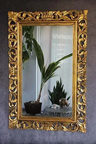 Gewöhnlich versandfertig in 5 bis 6 TagenNaturesco Barockspiegel Wandspiegel Rokoko Barock Holzrahmen geschnitzt Gold antik 120cm x 80cm