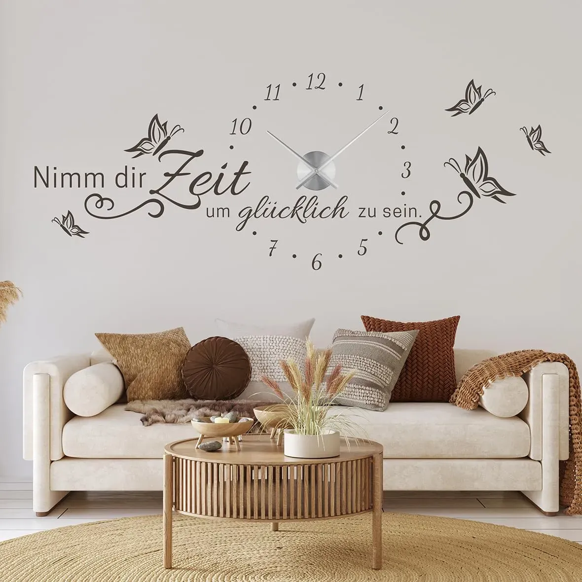 Verfügbarkeit: Auf Lager - Kategorie: Wandtattoos - tjapalo - tjapalo Wohnzimmer deko Bilder Wandaufkleber Wohnzimmer Spruch - made in Germany - inkl. Anleitung -, viele Farben auch in Gold WIE GEMALT: Unser Wohnzimmer Wandtattoo namaste ist ein richtiges Tattoo und kein Abziehbild, so wirkt es tatsächlich wie aufgemalt - an der Wand sieht man den Unterschied Das tjapalo Sprüche Wandtattoo Spruch wird in seidenmatt und am Stück hergestellt und muss nicht erst aufwändig an der Wand zusammengesetzt werden. Das Wandspruch Wohnzimmer Wandtattoo ist leicht anzubringen und hält auch auf Raufasertapete Holen Sie sich edles Design in Ihre Räume - mit unseren Wandtattoo Sprüche und Zitate - 25,80 Euro bei Amazon Marketplace Home Improvement - gefunden von billiger.de Diese Küchenuhr mit dem Spruch "Nimm Dir Zeit" ist eine charmante und praktische Ergänzung für die Küche. ![]() ![]() tjapalo® vr35 Küchenuhr Wohnzimmer Uhr wandtattoo uhr mit uhrwerk Küche Büro Flur Wandtattoo Wohnzimmer modern xxl Sprüche Wandsticker Nimm Dir Zeit, Farbe: Silber, Größe: B152xH58cm