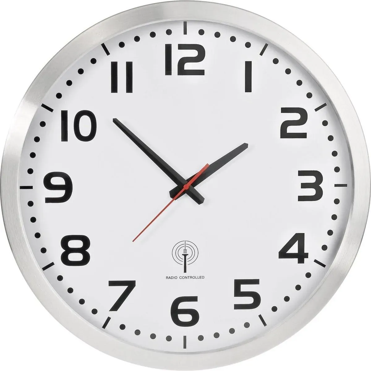 Auf Lager Versand durch AmazonTechnoline XXL Funkwanduhr WT8998, 50 cm, Bahnhofsuhr, XXL Wanduhr,Silber