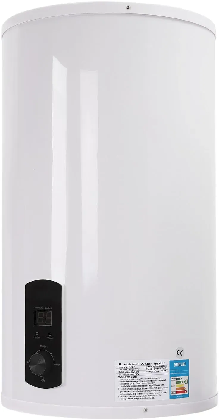 Zustand: Neu - Warmwasserspeicher - HauTour - NS - EAN: 0736963690957 - Langlebig: Es besteht hauptsächlich aus hochwertigem Kunststoff und Emaille und wird im Porzellanbrennverfahren hergestellt. Dadurch ist es isolierend, stark, solide, verschleißfest und verformt sich nicht leicht, was eine lange Lebensdauer gewährleistet. Hoher Wirkungsgrad: Die 2000W Leistung und das Edelstahl-Heizrohr mit schneller Wärmeleitfähigkeit können Sie in kurzer Zeit mit heißem Wasser versorgen, ohne dass Sie lange warten müssen. Große Kapazität: Dieses Produkt kann bis zu 13,2 Gallonen Wasser fassen, was eine reichliche Versorgung mit heißem Wasser für ein angenehmes Bad gewährleistet. Einfache Bedienung: Sie brauchen nur die Temperatur (77-167°F) mit dem Drehknopf zu regeln und den Modus für die verschiedenen Badebedürfnisse zu wählen. Das übersichtliche Bedienfeld mit digitaler Temperaturanzeige macht die Bedienung auch für ältere Menschen leicht verständlich. Einfach zu installieren: Mit komplettem Zubehör, zwei Halterungen und entsprechenden Befestigungsschrauben können Sie die Installation selbst vornehmen. Schützende Verpackung: Wir verpacken dieses Produkt in Schaumstoff, um Schäden am Produkt während des Versands zu minimieren. Ideales Geschenk: Dank seiner hervorragenden Leistung können Sie es als Urlaubs-, Geburtstags- oder Einweihungsgeschenk an Ihre Familie und Freunde verschenken. - Verkäufer: NSHAAA im amazon.de Marketplace Dieser 120L Elektro Warmwasserboiler von Konfiur bietet ein gutes Preis-Leistungs-Verhältnis für größere Mengen Warmwasser. ![]() ![]() Konfiur 2KW 120L Elektro Warmwasserboiler, IPX4 Vertikal Led Durchlauferhitzer Warmwasserspeicher ABS Wandhängender Boiler für Küchen, Toiletten, Friseursalons, Bäder, Wohnwagen (120L)