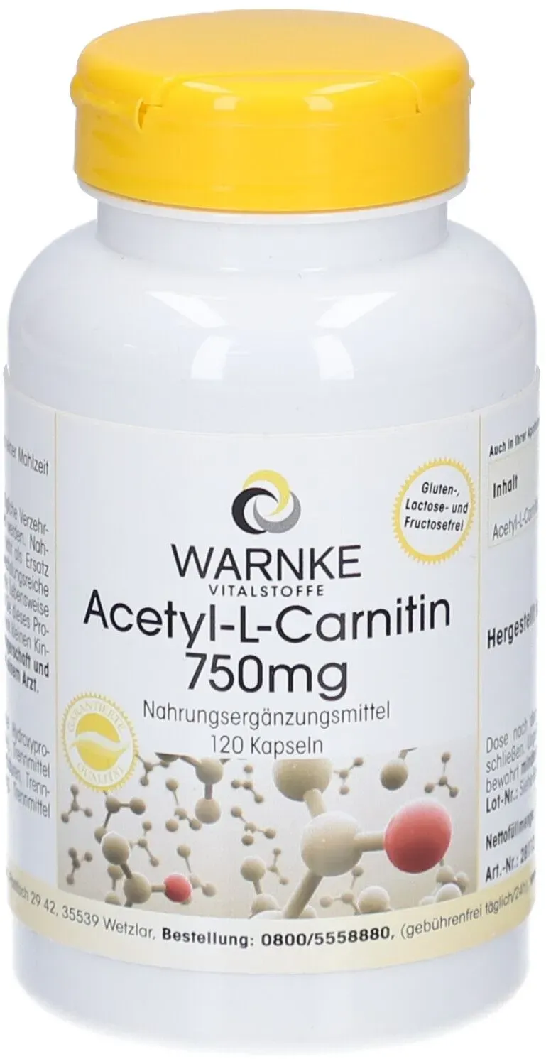 Verfügbarkeit: 3-5 Werktage - 0,19 €/Stück - Kategorie: Arzneimittel - Warnke Vitalstoffe - GTIN:4251773400078 - PZN:16356041 - Acetyl-l-carnitin 750 mg Kapseln können in Ihrer Versandapotheke erworben werden. - 22,95 Euro bei apotheke.de - gefunden von billiger.de ![]() ![]() Warnke Vitalstoffe Acetyl-L-Carnitin 750 mg Kapseln 120 St