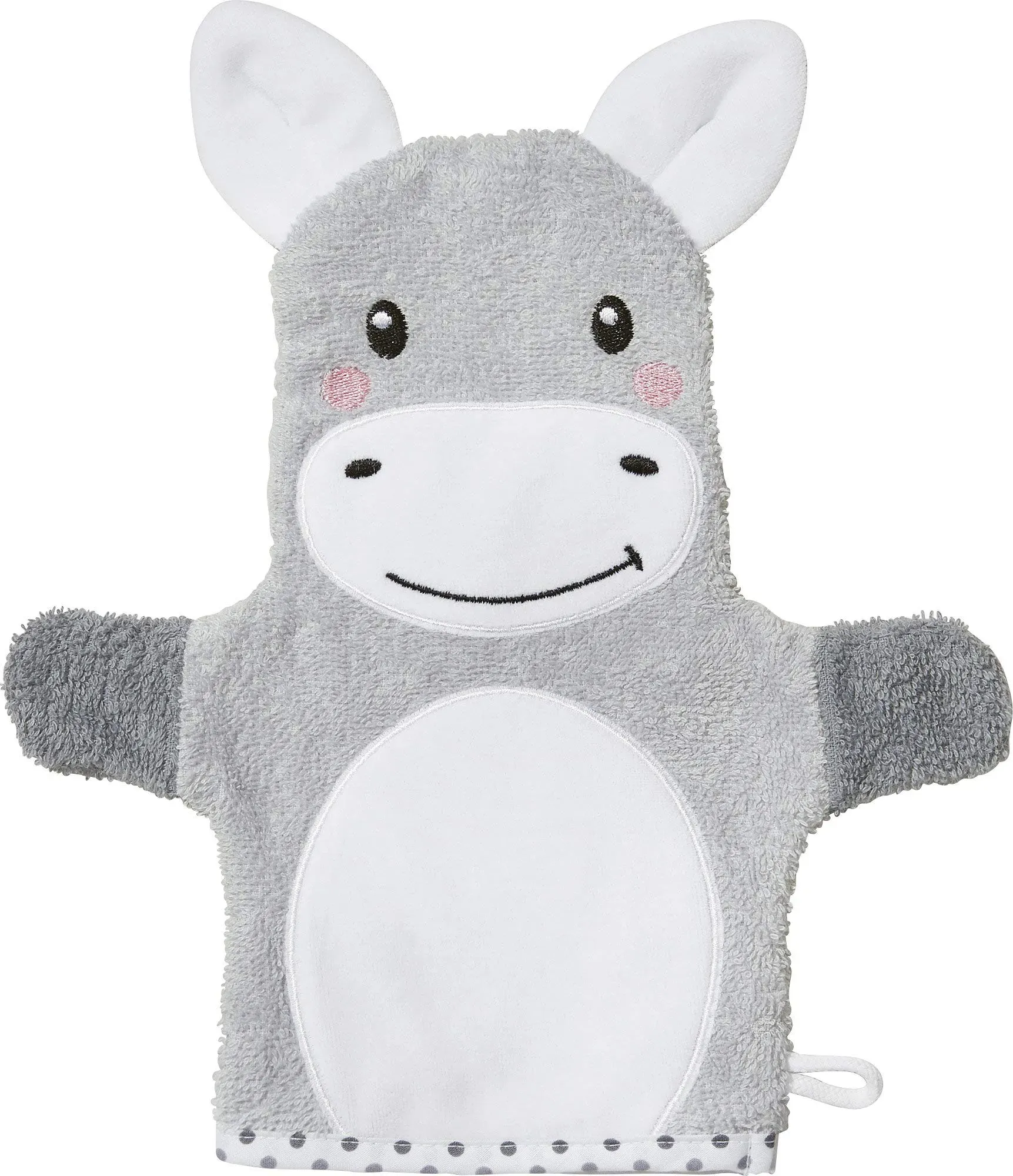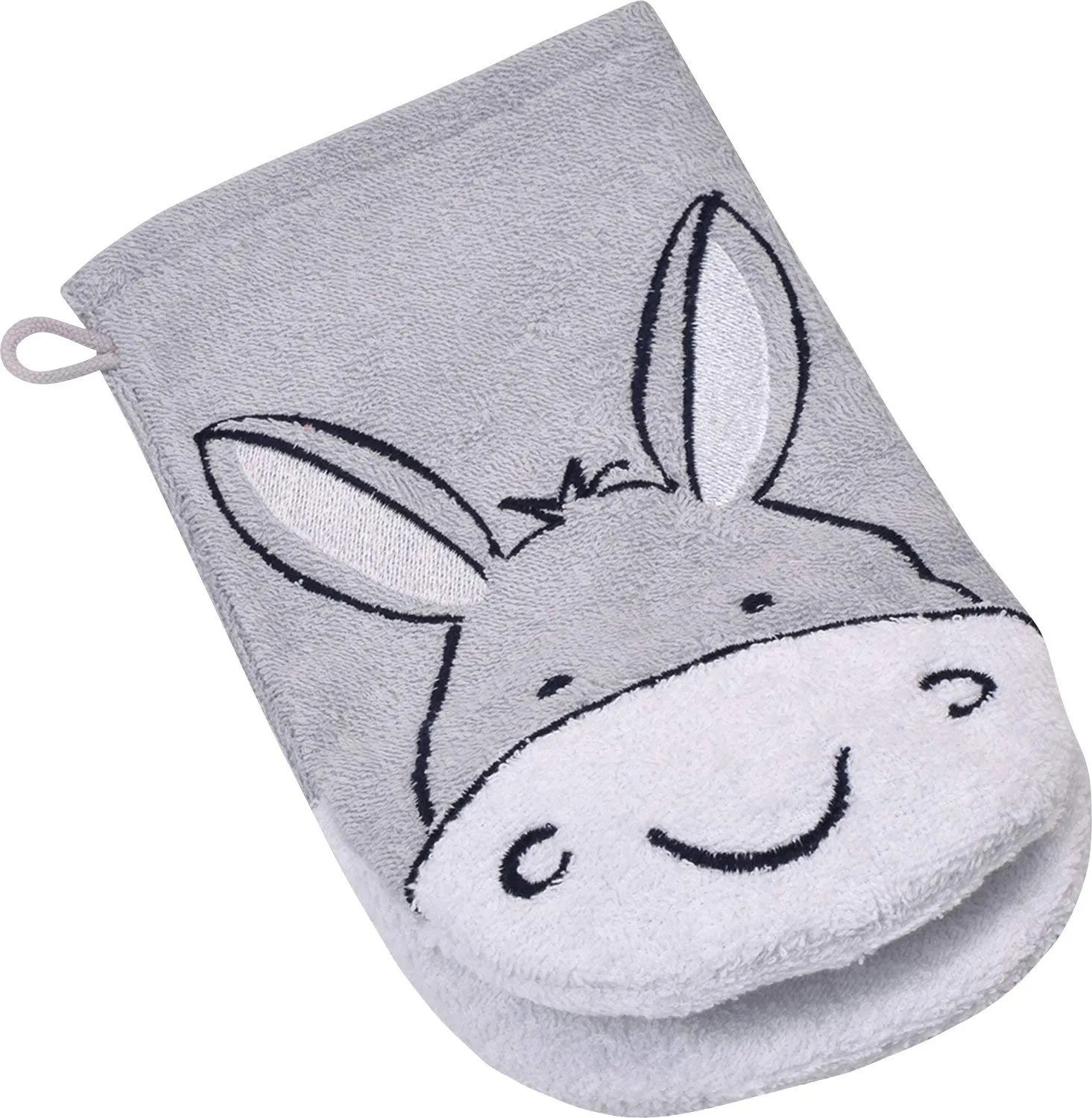 Gewöhnlich versandfertig in 2 bis 3 TagenWörner Wörner Kinder-Waschhandschuh"Esel" Frottier hellgrau Größe 15x21 cm