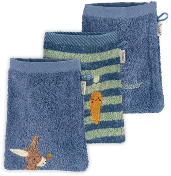 Auf Lager Versand durch AmazonSterntaler 3er-Pack Waschhandschuh Esel Emmilius aus Frottee (Baumwolle), Kinder Waschlappen in Mittelblau, verschiedene Designs