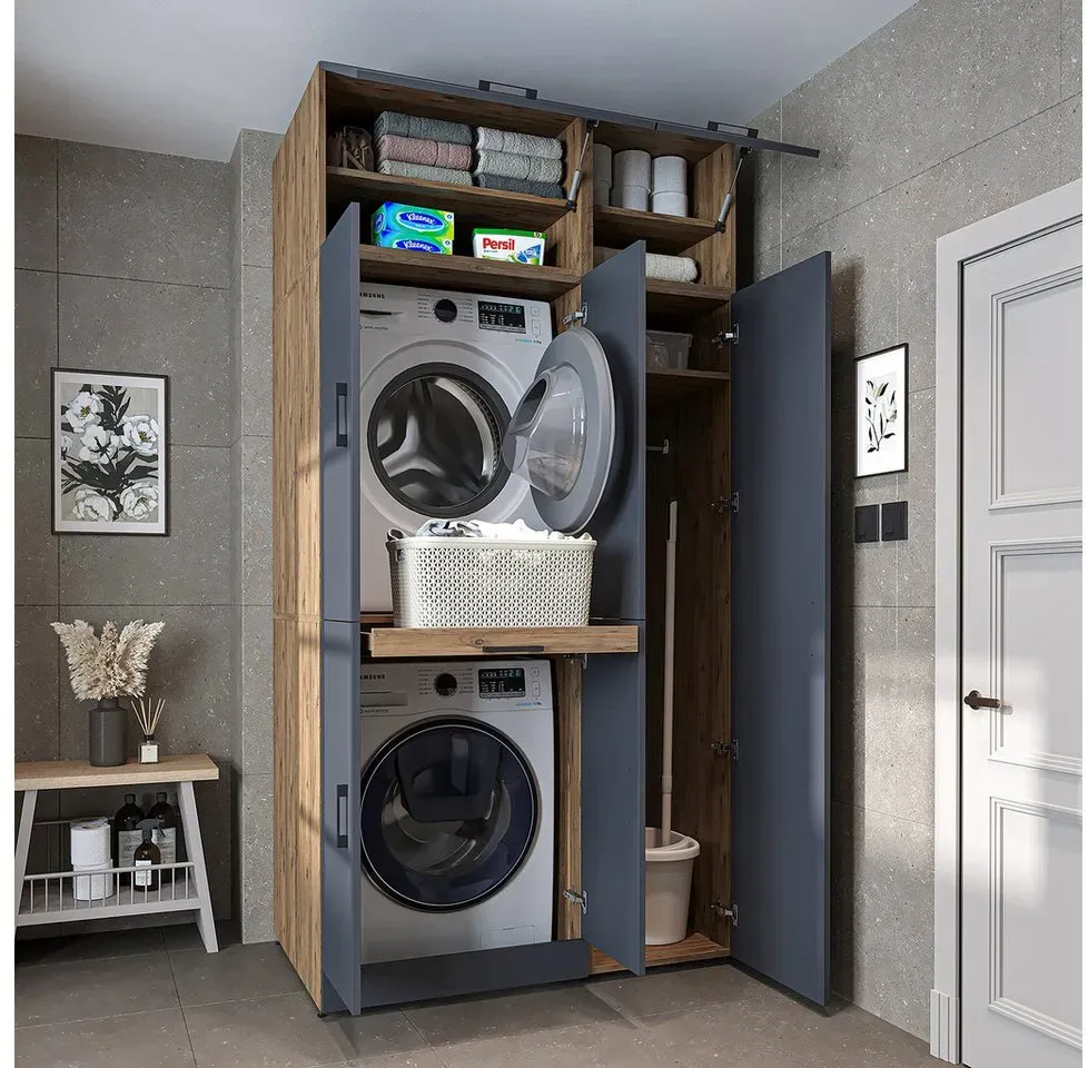 2 Händlerangebote bei billiger.de - Kategorie: Bad-Hochschränke - roomart - Produktdetails Serie , Roomart Dora, Ausstattung & Funktionen Art Auszug , Vollauszug, Ausstattung , Soft-Close-Funktion, Maßangaben Breite , 115 cm, Tiefe , 74 cm, Höhe , 230 cm, Farbe Farbe , Antrazit-Eiche, Lieferung & Montage Art Montage , Wandmontage, Wissenswertes Hersteller , 3, - GTIN:8682157249321 Dieser Waschmaschinenschrank bietet eine elegante Lösung, um Waschmaschine und Trockner zu verbergen und gleichzeitig eine Arbeitsfläche zu schaffen. ![]() ![]() roomart Waschmaschinenschrank Dora Set für Trockner & Waschmaschine, in 4 Farben, mit Türen und Ausziehbrett Weiß, Weiß Eiche, Anthrazit Eiche
