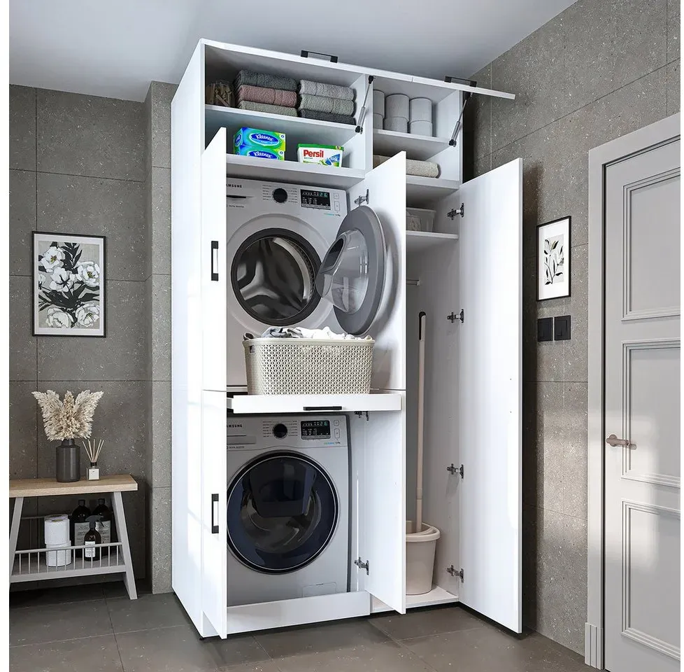 lieferbar-in 5-6 Werktagen bei dirInn.Furn Waschmaschinenumbauschrank Flexy (in weiß, 2-St., Set überbauschrank mit Kommode) für Waschmaschinen und Trockner weiß