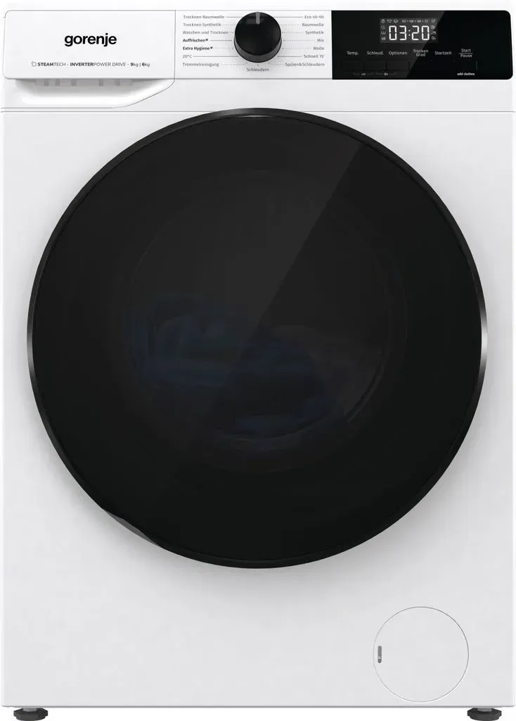 Gesamtsortiment Haushalt Haushaltgrossgeräte Waschen + Trocknen Waschtrockner Wäschetrockner - EAN:3838782674181 - Der Gorenje W3D2A854ADPS/DE Waschtrockner vereint innovative Technologie mit praktischen Funktionen, um eine effiziente und benutzerfreundliche Wäschepflege zu gewährleisten. Ausgestattet mit einem Inverter PowerDrive Motor, bietet dieses Gerät eine hohe Energieeffizienz und eine leise Betriebsweise. Der Türöffnungswinkel von 138° ermöglicht einen bequemen Zugang zur Trommel, während das LED-Display eine einfache Bedienung und Programmwahl unterstützt. Die Vielzahl an Wasch- und Trockenprogrammen, einschliesslich spezieller Optionen wie AllergyCare und Quick-wash, sorgt dafür, dass verschiedene Textilien optimal behandelt werden. Mit einem Wasserverbrauch von 80 Litern und einem Energieverbrauch von 266 kWh pro 100 Zyklen ist dieser Waschtrockner sowohl umweltfreundlich als auch kosteneffizient. Die Dampfbehandlungstechnologie reduziert Faltenbildung und sorgt für frische Wäsche ohne den Einsatz von Weichspüler. Die integrierten Sicherheitsfunktionen wie AquaStop und Kindersicherung bieten zusätzlichen Schutz im Haushalt. - Inverter PowerDrive Motor für hohe Energieeffizienz und leisen Betrieb - Dampfbehandlung zur Reduzierung von Falten und Gerüchen - Power JetWash-System für schnelle und effektive Fleckenentfernung - Vielzahl an Programmen, einschliesslich AllergyCare und Quick-wash - Sicherheitsfunktionen wie AquaStop und Kindersicherung. - gefunden von ... Ein preisgünstiges Modell mit guter Kapazität für Waschen und Trocknen, ideal für preisbewusste Käufer. ![]() ![]() Gorenje WD2A964ADPS/DE Kondensations-Waschtrockner, Waschen 9 kg, Trocknen 6 kg - Weiß