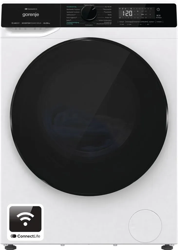 Kategorie: Waschtrockner - Gorenje - GTIN:3838782968983 - 20% better than A energy class Sparen Sie Energie und Kosten und schonen Sie die Umwelt mit einer bemerkenswerten Senkung des Energieverbrauchs. Gorenje Waschmaschinen sind bis zu 20 % sparsamer als die . AquaStop washing AquaStop ist ein Sicherheitsmechanismus, das einen hohen Schutz gegen den Austritt von Wasser bietet. Hierzu gehört ein Sicherheitsventil am Schlauch zum Wassserhahn, ein Schwimmerschalter am Boden des Waschbottichs sowie als überlaufschutz eine automatische Wasserpumpe. Bei einem Fehler in der Wasserzuleitung wird der Wasserzufluss durch eine mechanische Vorrichtung unterbunden. Inverter PowerDrive motor Ein äußerst leiser, aber hocheffizienter bürstenloser Motor, der bei jedem Waschgang einen Beitrag zur Energieeinsparung leistet und gleichzeitig die Lebensdauer der Waschmaschine deutlich verlängert.de nach dem Kauf eines entsprechenden Gerätes. ConnectLife Vereinfachen Sie Ihr Leben und nutzen Sie alle Möglichkeiten zur Steuerung und Kontrolle Ihres Waschtrockners per App auf Ihrem Mobilgerät.Fernsteuerung, mobile Benachrichtigungen und Ticketing sind Funktionen, die Ihnen helfen, alle Vorgänge reibungsloser und schneller zu verwalten, egal wo Sie sind. LED display Das große Display hält Sie immer auf dem Laufenden über Ihre Einstellungen und Auswahlmöglichkeiten, wie Wasch- oder Trockenprogramm, Temperatur, Schleuderdrehzahl und Programmdauer. Gleichzeitig können Sie mit dem praktischen ... Ein fortschrittliches Modell mit Connect Life-Funktion, vielen Programmen und Inverter PowerDrive Motor für effiziente und smarte Nutzung. ![]() ![]()