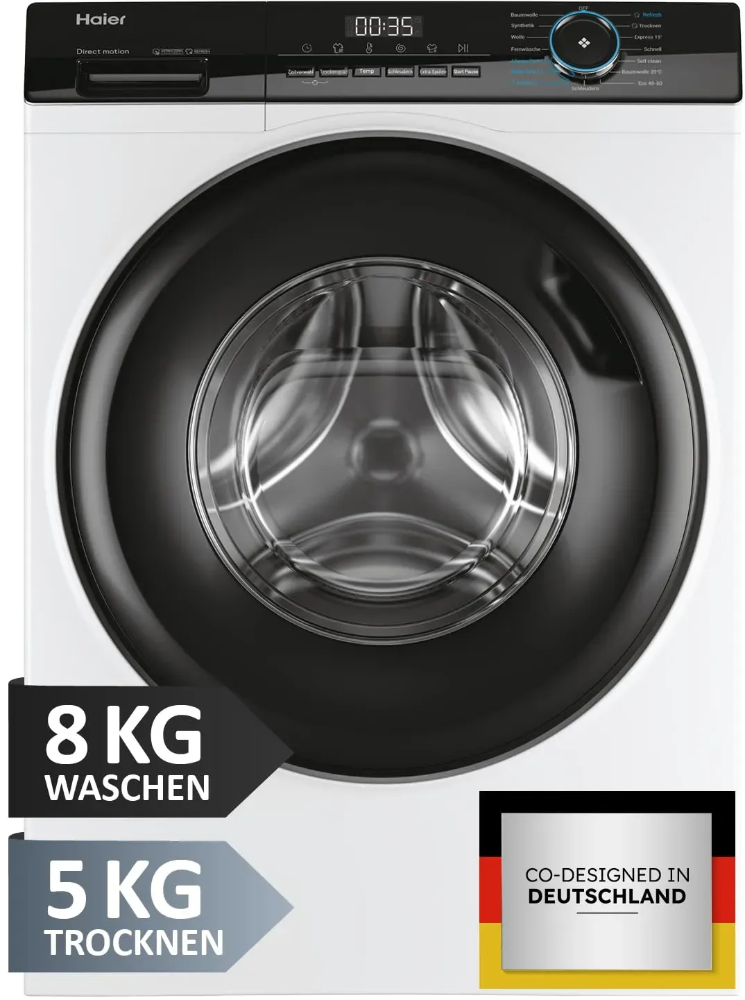 6 Händlerangebote bei billiger.de - Kategorie: Waschtrockner - Haier - Aktuelle Technologie: Der Waschtrockner (8 kg Waschen, 5 kg Trocknen) mit Energie- & Geräuschklasse A (Waschen) bzw. D (Waschen und Trocknen) bietet ein modernes Design und neueste Technologie darunter den flüsterleisen Direct Motion Motor mit Direktantrieb, der aufgrund seiner fast lautlosen Arbeitsweise ein ungeschlagener Pionier seiner Kategorie ist. Hinzu kommen ein automatisches Reinigungssystem (Smart Dual Spray), Mengenautomatik, ein Aquastop-Schlauch, ABT & ein Refresh-Dampfprogramm. Gerätemaße: 85 x 60 x 62 cm (H x B x T). Hygienisch reine Wäsche: Die speziellen Dampfprogramme der Waschmaschine mit Trockner wirken antibakteriell, entfernen hartnäckigen Schmutz sowie Flecken und erleichtern das Bügeln. Für eine schnelle Auffrischung zwischendurch sorgt zudem das Refresh-Dampfprogramm, welches Gerüche und Falten mittels einer schnellen Auffrischung ohne Wasserkontakt entfernt. Antibakterielle Technologie: Das automatische Reinigungssystem Smart Dual Spray sorgt mit zwei Wasserdüsen für zusätzliche Hygiene, indem es nach jedem Waschgang Schaum und Flusen von Innentür und Manschette entfernt. Und dank der antibakteriellen Türmanschetten wird zudem das Wachstum von Bakterien an diesem anfälligen Waschmaschinenteil mit über 99 % Wirksamkeit verhindert. Nachhaltig & kosteneffizient: Energieklasse A für den reinen Waschvorgang, Schleuderklasse A und Kombi-Energieklasse D sprechen für sich. Möglich wird ... Dieses Modell ist eine kostengünstige Option für Nutzer, die einen zuverlässigen Waschtrockner mit grundlegenden Funktionen suchen. ![]() ![]()