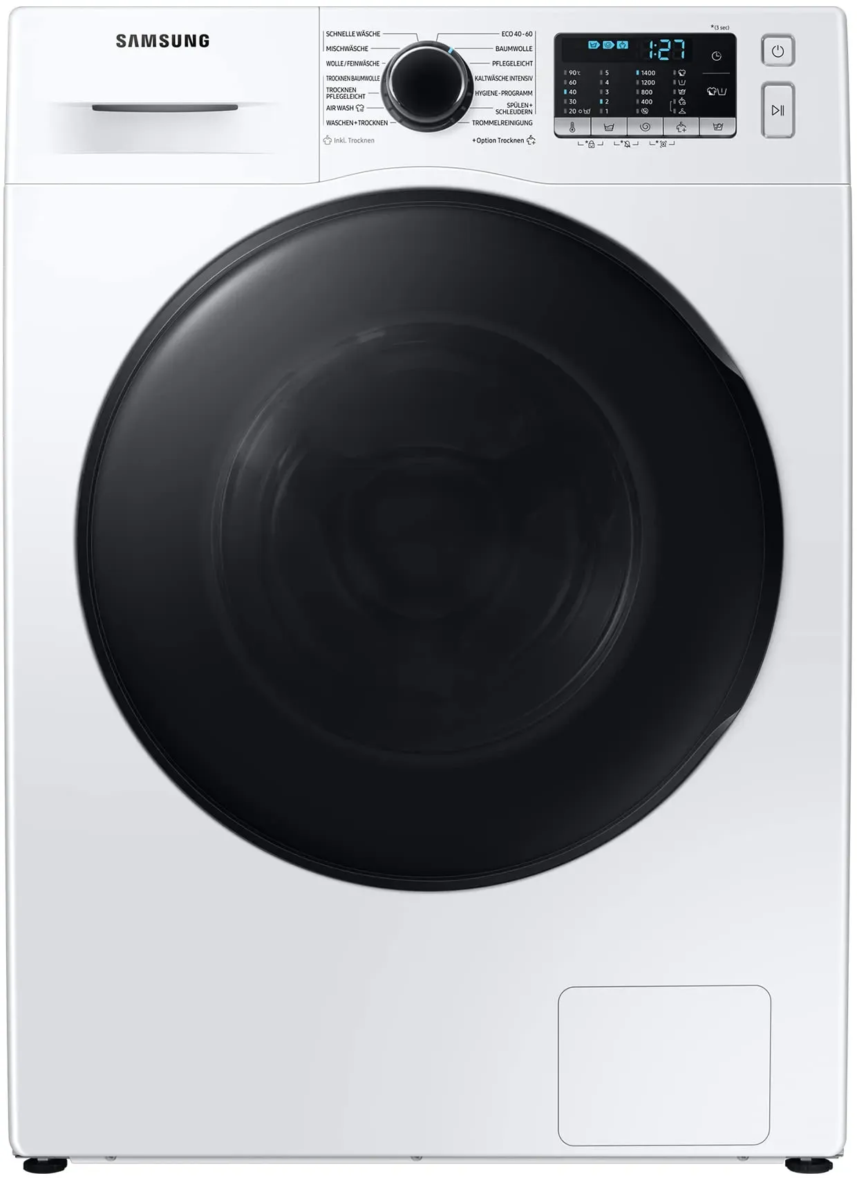 EEK: C - Kategorie: Waschtrockner - Samsung - GTIN:8806090607189 - Die Ecobubble-Technologie gibt das Waschmittel direkt als Schaumpolster in die Trommel, sodass Sie Ihre Wäsche besonders schonend, gründlich und bei niedrigen Temperaturen energiesparend waschen können Mit AirWash von Samsung lassen sich empfindliche Stoffe wie Blusen, feines Bettzeug oder sogar Stofftiere mit warmer Luft effektiv auffrischen, ohne einzulaufen oder beschädigt zu werden. Zudem reduziert Airwash nicht nur Falten sondern beseitigt auch unangenehme Gerüche wie Zigarettenrauch Das Hygiene-Dampfprogramm Ihrer Waschmaschine sorgt mit einer zusätzlichen Tiefenbehandlung mit Dampf für hygienische Sauberkeit bis in die letzte Faser Lassen Sie mit der FleckenIntensiv-Funktion selbst hartnäckige Flecken (z.B. Make-Up oder Gras) verschwinden und freuen Sie sich über makellos saubere Wäsche Die Diamond Pflegetrommel rt mit den feinen, diamantförmigen Erhöhungen und den kleinen Löchern ein sanftes Trocknen, bei der auch sehr empfindliche Kleidung effektiv geschont wird - 519,00 Euro bei Amazon Marketplace CE - gefunden von billiger.de Der LG Waschtrockner ist mit 579 Euro eine gute Mittelklasse-Option mit solider Leistung und Kapazität. Mediamarkt .de LG W4WR7096YB Serie 7 Waschtrockner (9 kg / 6 kg, 1360 U/Min.)