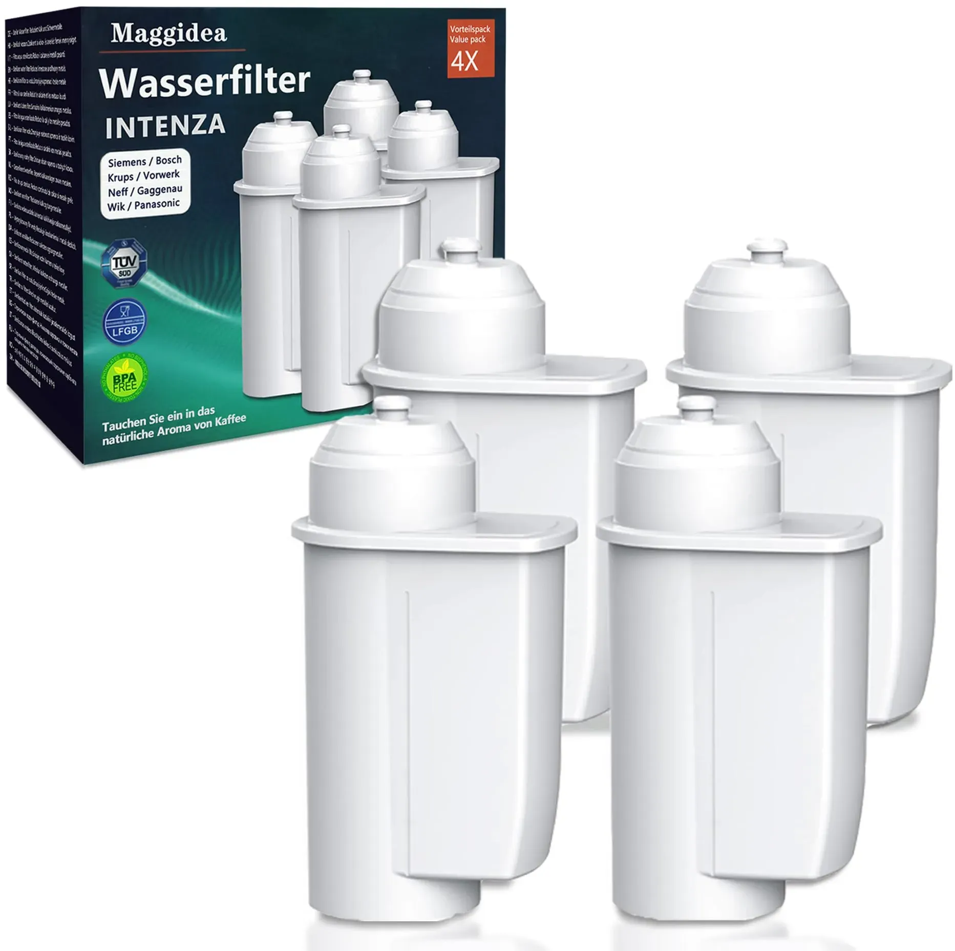 Zustand: Gebraucht - 3,25 € / stück - Wasserfilter Wasserfilter für Kaffeemaschinen - Waterdrop - WD-C01 WD-01-4-N - EAN: 0840814153420 - Ersatzmodelle: Ersatz für Siemens EQ Series, EQ3/5/6 Plus/7/8/9, Siemens TZ70003, TCZ70003, Bosch TCZ-7003, Ersatz für Brita Intenza Temial, 17000705; Bosch Vero, Bosch TES71151, UNIWATER 1301. Dieser Filter ist kein Originalprodukt. Saubere und gute Verkostung: Der erstklassige Ionenaustauscher und die granulöse Aktivkohle reduzieren effektiv Chlor, Geschmack, Geruch, Kesselstein, Schwermetallen und anderen potentiellen schädlichen Verunreinigungen im Wasser, um frisches Wasser zu liefern und den Geschmack von Getränken zu verbessern. Getestet von einem dritten Labor. 2-Monate Erfrischung: Für beste Ergebnisse und kontinuierliche Erfrischung wird empfohlen, den Filter alle 2 Monate zu ersetzen, was von Ihrer Wasserqualität abhängt. Kostengünstige Wahl: Unser Filter bietet einen vernünftigen Preis ohne Kompromisse bei der Qualität und bietet Ihnen besseren Kaffee zu einem Bruchteil des Preises an. Hinweis: Bitte legen Sie den Filter vor dem Gebrauch 5-10 Minuten in sauberes Leitungswasser, um den Filter zu spülen und die Luftblasen zu lösen. - 14 Händler im amazon.de Marketplace Ein preisgünstiges 4er-Pack, das eine gute Balance zwischen Kosten und Vorrat bietet. ![]() ![]() maggidea Wasserfilter für Siemens EQ Series, EQ5, EQ6, EQ9, EQ500, S700, Wasserfilter Kaffeevollautomat für Siemens 3200, Bosch TCZ7003, TCZ7033, 467873 (4 Stück)