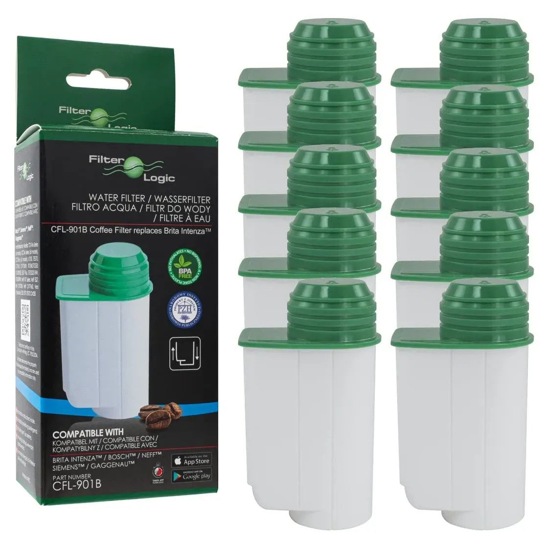 Kategorie: Wasserfilter - Filterlogic - GTIN:5060511220033 - FilterLogic CFL-901B Wasserfilter kompatibel mit Brita Intenza Filterkartusche für Siemens, Bosch, Neff, Gaggenau, Panasonic Kaffeemaschinen - Kaffeevollautomaten - Vollautomaten Alternative Filterpatrone für Typ Nr. TCZ7003, TCZ-7003 - TCZ7033, TCZ-7033 - TZ70003, TZ-70003 - TZ70033A, TZ-70033A | 17000705 - 17000706 - 17005980 - 17004340 - 00468009 - 00467873 - 00575491 Für Bosch Serie : VeroCup 100, 300, 400, 500, 600, 700 Exclusiv - VeroBar - VeroAroma - VeroSelection - VeroCafe Latte & LattePro - VeroProfessional - Vero AromaPro : TIS30159DE, TES80359DE, TES60351DE, TES60759DE, TES50159DE, TIS30351DE, TES50358DE, TES50651DE, TES603F1DE, TES80751DE, TES51551DE, CTL636EB6, CTL636ES1, CTL636ES6 / Für NEFF : C17KS61N0, C15KS61N0 / Für Gaggenau : Espresso-Vollautomat Serie 200 + 400 : CM-470, CM250, CM-450 / CMP-270, CMP-250 / Für Panasonic : NC-ZA1 Für Siemens Series : EQ3, EQ.3, EQ300, EQ.300 / EQ5, EQ.5, EQ500, EQ.500 / EQ6, EQ.6 / EQ7, EQ.7 / EQ8, EQ.8 / EQ9 , EQ.9 / iQ700 - Kaffeevollautomaten, Einbau-Kaffeevollautomat, Kaffeevollautomaten mit Home Connect der Serien : s100, s300, plus s500, plus connect s500, plus s700, plus connect s700, Classic, integral, extraKlasse, plus extraKlasse Für Siemens Modelle : TE604509DE, TE613501DE, TE615509DE, TE617503DE, TE617F03DE, TE657509DE, TE657F03DE, TE657F09DE, TE657M03DE, TE803509DE, TI303503DE, TI305506DE, TI313519DE, TI351509DE TI353501DE, TI355F09DE, TI909701HC, ... Das 10er-Pack FilterLogic Wasserfilter bietet die größte Menge an kompatiblen Filtern zu einem attraktiven Preis pro Stück. ![]() ![]() FilterLogic CFL-901B | 10er Pack - Wasserfilter für Siemens EQ Series EQ.3 EQ.5 EQ500 EQ.6 EQ.9 - Für Bosch Verocup Verobar Kaffeevollautomat kompatibel mit Brita Intenza TZ70003 TZ70033A TCZ7003