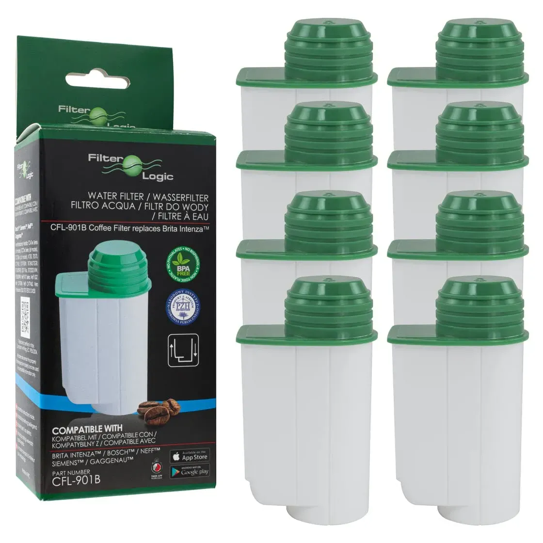 Kategorie: Wasserfilter - Filterlogic - GTIN:4260561190336 - FilterLogic CFL-901B Wasserfilter kompatibel mit Brita Intenza Filterkartusche für Siemens, Bosch, Neff, Gaggenau, Panasonic Kaffeemaschinen - Kaffeevollautomaten - Vollautomaten Alternative Filterpatrone für Typ Nr. TCZ7003, TCZ-7003 - TCZ7033, TCZ-7033 - TZ70003, TZ-70003 - TZ70033A, TZ-70033A | 17000705 - 17000706 - 17005980 - 17004340 - 00468009 - 00467873 - 00575491 Für Bosch Serie : VeroCup 100, 300, 400, 500, 600, 700 Exclusiv - VeroBar - VeroAroma - VeroSelection - VeroCafe Latte & LattePro - VeroProfessional - Vero AromaPro : TIS30159DE, TES80359DE, TES60351DE, TES60759DE, TES50159DE, TIS30351DE, TES50358DE, TES50651DE, TES603F1DE, TES80751DE, TES51551DE, CTL636EB6, CTL636ES1, CTL636ES6 / Für NEFF : C17KS61N0, C15KS61N0 / Für Gaggenau : Espresso-Vollautomat Serie 200 + 400 : CM-470, CM250, CM-450 / CMP-270, CMP-250 / Für Panasonic : NC-ZA1 Für Siemens Series : EQ3, EQ.3, EQ300, EQ.300 / EQ5, EQ.5, EQ500, EQ.500 / EQ6, EQ.6 / EQ7, EQ.7 / EQ8, EQ.8 / EQ9 , EQ.9 / iQ700 - Kaffeevollautomaten, Einbau-Kaffeevollautomat, Kaffeevollautomaten mit Home Connect der Serien : s100, s300, plus s500, plus connect s500, plus s700, plus connect s700, Classic, integral, extraKlasse, plus extraKlasse Für Siemens Modelle : TE604509DE, TE613501DE, TE615509DE, TE617503DE, TE617F03DE, TE657509DE, TE657F03DE, TE657F09DE, TE657M03DE, TE803509DE, TI303503DE, TI305506DE, TI313519DE, TI351509DE TI353501DE, TI355F09DE, TI909701HC, ... Dieses 8er-Pack FilterLogic Wasserfilter ist eine gute Wahl für Vielnutzer, die Wert auf Kompatibilität legen. ![]() ![]() FilterLogic CFL-901B | 8er Pack - Wasserfilter für Siemens EQ Series EQ.3 EQ.5 EQ500 EQ.6 EQ.9 - Für Bosch Verocup Verobar Kaffeevollautomat kompatibel mit Brita Intenza TZ70003 TZ70033A TCZ7003