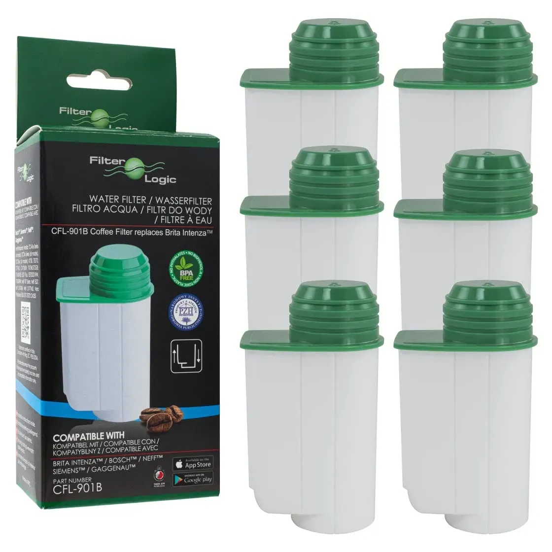 6.58 / Stück - Kategorie: Wasserfilter - GLACIER FRESH - Professionelle Zertifizierung:Die Z057 Filter sind vom TüV SüD für Lebensmittelqualität und strukturelle Integrität geprüft und zertifiziert und erreichen dadurch eine effektive Reduzierung von Chlor Perfekte Kompatibilität:Kompatibel mit Siemens, Bosch, Gaggenau und Neve Kaffeevollautomaten. Kompatibel mit allen Siemens EQ Serie Kaffeevollautomaten, einschließlich EQ.3/5/6/7/8/9 Serie, EQ6 plus s700, EQ9 Plus, EQ500, EQ700, EQ900 und anderen Modellen. Ersetzt Brita Intenza TZ70033A Premium Filtermaterial:Bleifrei und BPA-frei. Aus 100 % natürlicher Aktivkohle aus Sri Lanka, hochwertigem Ionenaustauscherharz und PP-Baumwolle. Die mehrschichtige Filterstruktur entfernt effektiv Schadstoffe, während natürliche Mineralien erhalten bleiben Detailliertes Design:Durch Drehen des Aroma-Rings am Filter können Sie die Filterleistung optimal an die Wasserbedingungen anpassen und den Geschmack Ihres Kaffees verbessern. Der Wasserfilter ist sicher im Tank befestigt und kann nicht schwimmen oder auslaufen Schützt die Maschine:Ein Wasserfilter verbessert die Leistung und Effizienz Ihrer Kaffeemaschine, verlängert deren Lebensdauer und verhindert Kalkablagerungen. Er hält die Leitungen sauber und verringert das Korrosionsrisiko Kundendienst Wenn Sie einen beschädigten Wasserfilter erhalten. Bitte kontaktieren Sie unseren Kundenservice, und wir werden Ihnen eine zufriedenstellende Lösung anbieten.Der Zusammenstoß beim Transport ... Ein 6er-Pack FilterLogic Wasserfilter, der eine gute Menge für einen längeren Zeitraum bietet. ![]() ![]() FilterLogic CFL-901B | 6er Pack - Wasserfilter für Siemens EQ Series EQ.3 EQ.5 EQ500 EQ.6 EQ.9 - Für Bosch Verocup Verobar Kaffeevollautomat kompatibel mit Brita Intenza TZ70003 TZ70033A TCZ7003