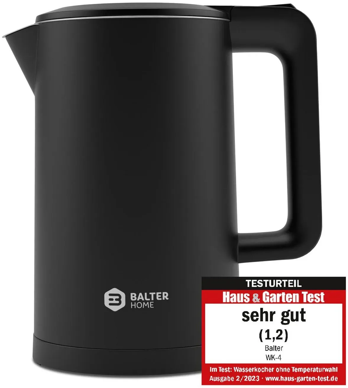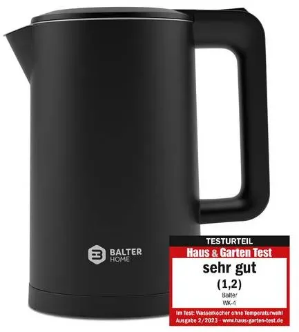 lieferbar-in 3-4 Werktagen bei dirBalter Home Balter Wasserkocher Balter Wasserkocher WK-4 Edelstahl Doppelwand Design BPA frei schwarz, 1.7 l, 2200 W, Edelstahl, Doppelwändig schwarz