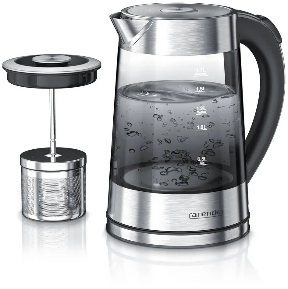 lieferbar-in 2-3 Werktagen bei dirArendo Wasserkocher Glas & Edelstahl, Temperatureinstellung, Teesieb, Rauchglas, Teekocher, 1,7 l, 2200 W, Temperaturwahl 40 C - 100 C, Abschaltautomatik, Warmhaltefunktion silberfarben