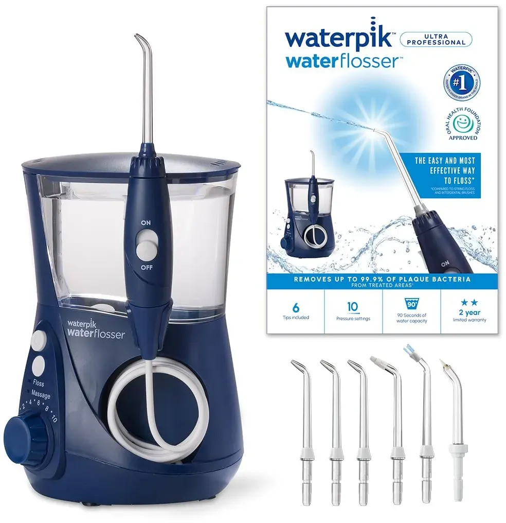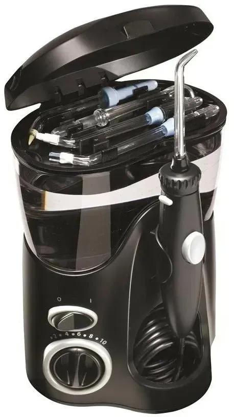 Zustand: Gebraucht - Mundduschen - Waterpik - WP-100EU 20027054 - EAN: 0073950336871 EAN: 0073950270540 - Einfache und effektivere Reinigung der Zahnzwischenräume! Unsere fortschrittlichste feststehende elektrische Munddusche Einfache Handhabung dank ein-/Ausschalter direkt am Griff der Munddusche; Abmessung Zehn Druckstufen von sanfter Reinigung bis zur gründlichen Entfernung des Zahnbelags, 650-ml-Wassertank, EU-Stecker (100-240 V AC, 50/60 Hz) Im Lieferumfang enthalten: 7 Aufsätze für die Munddusche, zwei Jahre - 5 Händler im amazon.de Marketplace ![]() ![]() Waterpik Ultra Professional Munddusche, Testsieger 2025, Precision Pulse Technology, TÜV Siegel, bis zu 99,9 Prozent Plaque Entfernung, 7x Aufsätze, 10x individuelle Modi, integrierter Timer, Blau
