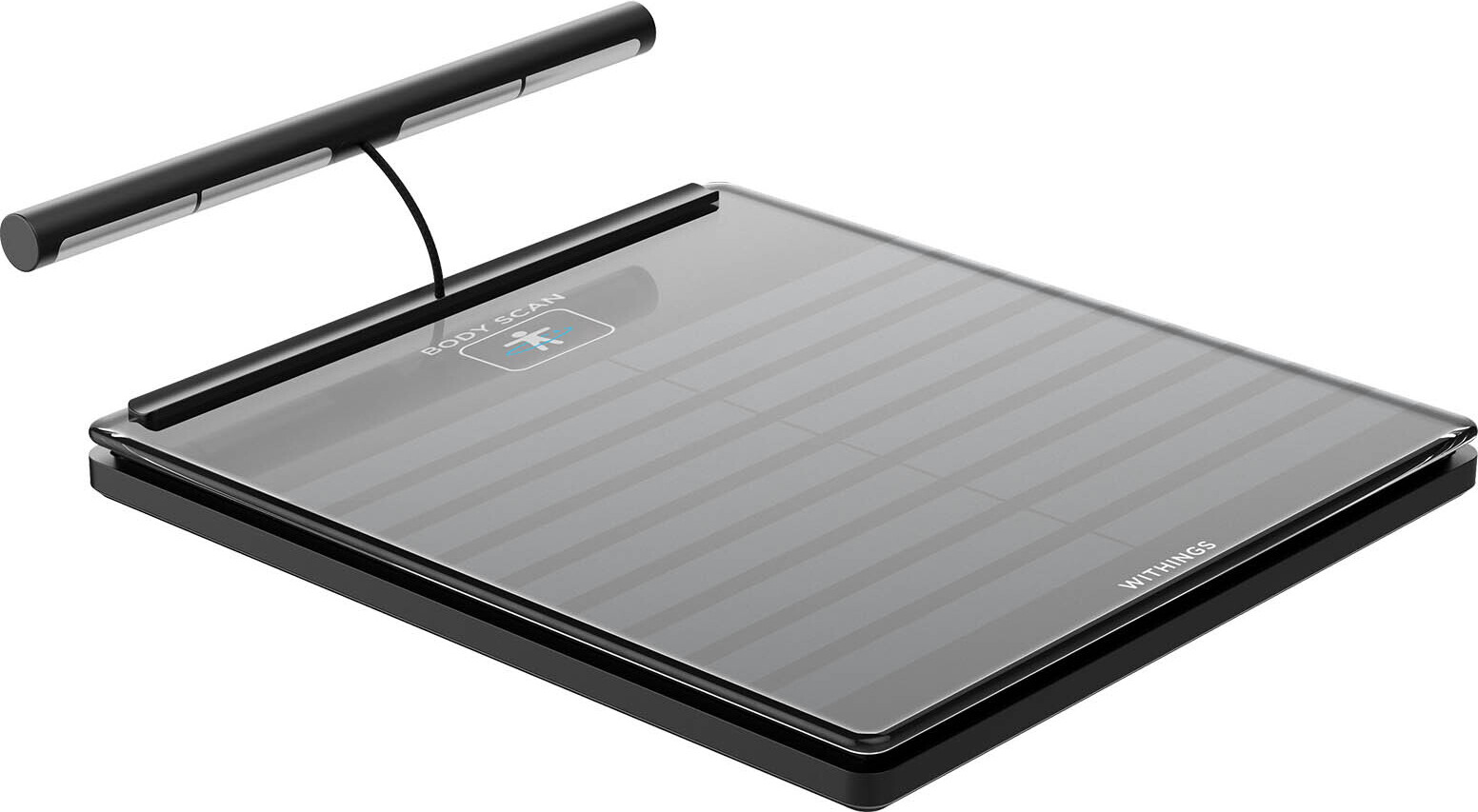Withings - EAN: 3700546707957 - Withings Body Scan (200 kg) (WBS08-BLACK-ALL-INTER) - bei galaxus.de - aus Yadore Produktdaten ![]() ![]() WITHINGS Body Scan - Vernetzte WLAN-Waage zur Verbesserung Ihrer Gesundheit, BIA-Personenwaage, Analyse der Körperzusammensetzung, Körperfett, Muskelmasse, Wasseranteil, Elektrokardiogramm, Schwarz