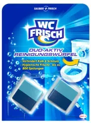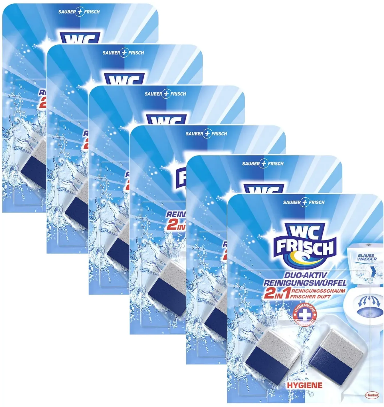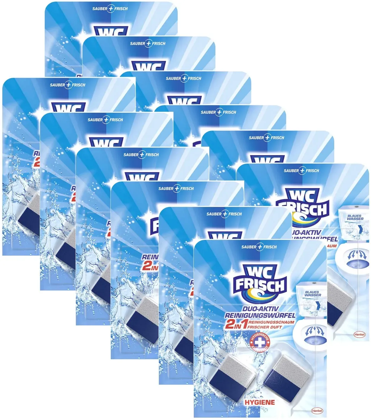 29.92 / kg - Kategorie: Waschmittel - WC-Frisch - GTIN:4015000959742 - WC FRISCH Duo-Aktiv Reinigungswürfel für Wasserkästen 12er Pack (12 x 100 g) - 35,90 Euro bei Amazon Marketplace Health & Personal Care - gefunden von billiger.de Dieses 12er-Pack ist ideal für GroÃ?verbraucher und bietet den besten Preis pro Stück. ![]() ![]() WC FRISCH - Duo Aktiv eBay Reinigungswürfel Hygiene 100 g (12 x 2x50g)