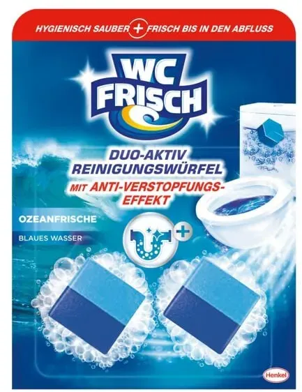 EAN: 4015200035529 - Der WC Frische Duo-Aktiv Reinigungswürfel, ozeanfrische bietet Frische und Sauberkeit für die Toilettenschüssel. Der Wasserkastenwürfel verhindert das Entstehen von Verstopfungen. - bei hygi.de - aus Yadore Produktdaten Ein klassisches 2er-Pack, das die Kernfunktionen von WC Frisch Duo-Aktiv hervorhebt. ![]() ![]() WC FRISCH Duo-Aktiv Reinigungswürfel für Wasserkästen (2 Stück), WC Reiniger bietet hygienische Sauberkeit und Kalkschutz, 2in1 Reinigungsschaum und frischer Duft