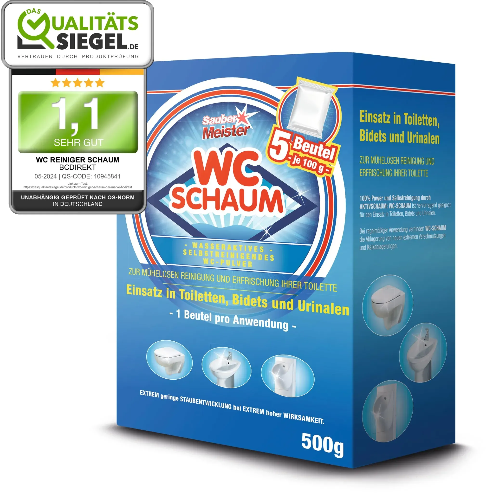 Zustand: Neu - 7,90 € / kg - WC-Reiniger - STARWAX Starwax - 5325297 - EAN: 3365000403952 - ENTKALKT: Der WC-Entkalker ist ideal, um Wandung und Boden des Beckens gründlich zu reinigen und das gute Funktionieren des WC sicherzustellen.Gefährlich.Die Vorsichtsmaßnahmen beachten.Nur für den vorgesehenen Zweck verwenden. STARK KONZENTRIERTE FORMEL: Der WC-Entkalker besteht aus einem stark konzentrierten Pulver, das besonders effizient bei starken Ablagerungen an Wandung und Boden der Toilettenschüssel wirkt. SOFORTWIRKUNG: Sobald das Pulver mit Wasser in Kontakt tritt, setzt es Schwefelsäure frei, um effizient selbst extreme Ablagerungen zu lösen. Der WC-Entkalker ist für Klärgruben geeignet. GEBRAUCHSANWEISUNG: Eventuelle WC-Steine entfernen. Die Spülung betätigen, um das Becken zu befeuchten. Die Flasche vor dem Öffnen gut mehrmals kopfüber schütteln, um die Wirksamkeit der Formel zu aktivieren. PFLEGEN SIE IHR HAUS UND DEN PLANETEN: Starwax engagiert sich für verantwortliches Handeln und bemüht sich, neues Plastik zu reduzieren, recyceltes Plastik, Karton und recyceltes Metall zu nutzen, Nachfüllformate und natürliche Rezepturen anzubieten. - bei Amazon.de Dieses Produkt ist bekannt aus dem TV und bietet einen kraftvollen Zauberschaum gegen Kalk und Urinstein. ![]() ![]() Sauber Meister WC Reiniger Schaum | Kraftvoller Kalkentferner & Urinsteinlöser | WC Pulver Zauberschaum bekannt aus dem TV | Idealer Kloreiniger 1000g (5 x 100 g (1er Pack))
