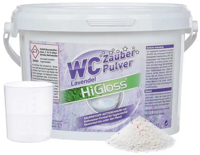 lieferbar-in 3-4 Werktagen bei dirHiGloss WC Zauberpulver für eine saubere Toilette WC-Reiniger (1-St. 2,5kg Schmutzfinder-Technologie, WC Schaum extra stark geg. Urinstein & Kalk)