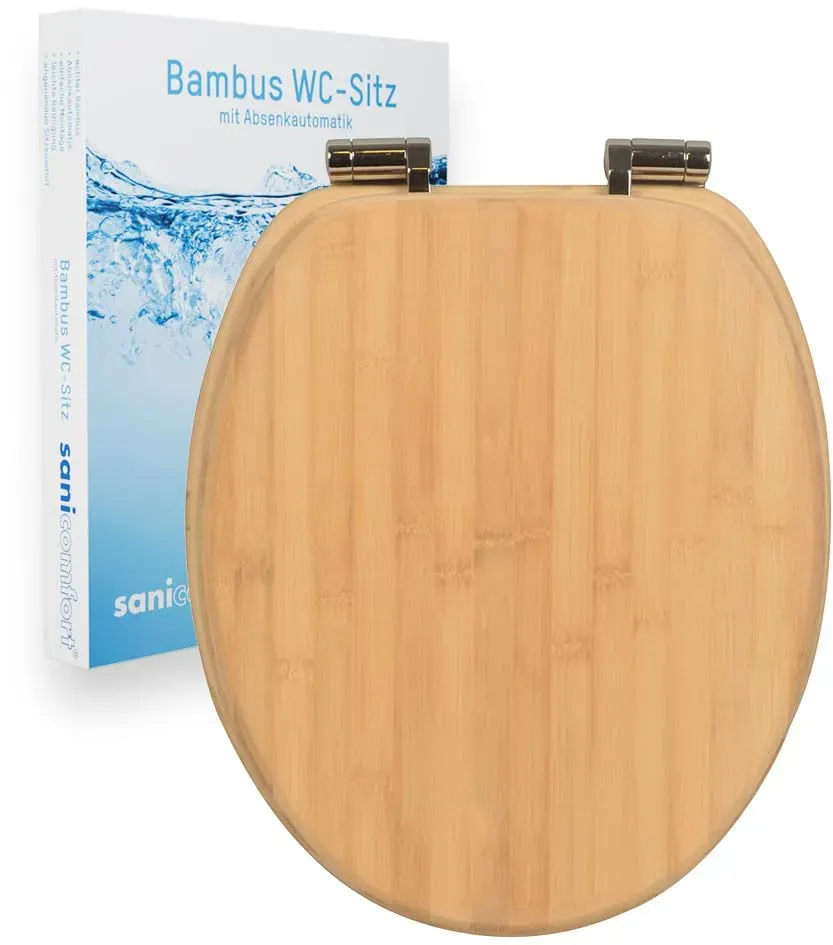 Gewöhnlich versandfertig in 3 bis 4 Tagensanicomfort WC-Sitz Bambus mit Absenkautomatik | Toilettensitz aus Echtholz | Soft-Close | Antibakteriell, belastbar, oval, universell | Edelstahl-Scharniere light