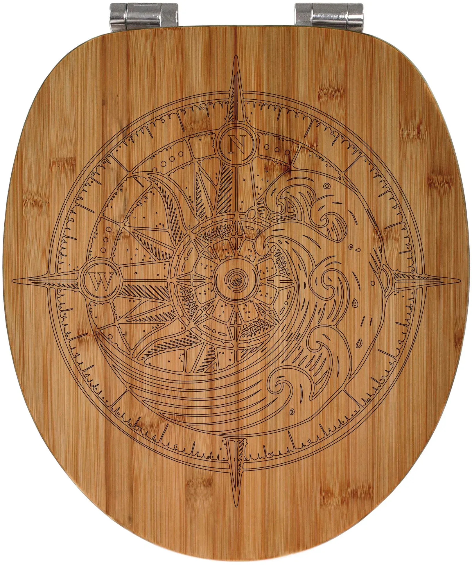 Gewöhnlich versandfertig in 3 bis 4 Tagenbanjado Hochwertig gravierter Design WC Sitz Bambus Absenkautomatik Kompass/Toilettendeckel mit Absenkautomatik Holz/Bambus Klodeckel/WC-Sitz für alle gängigen Toiletten