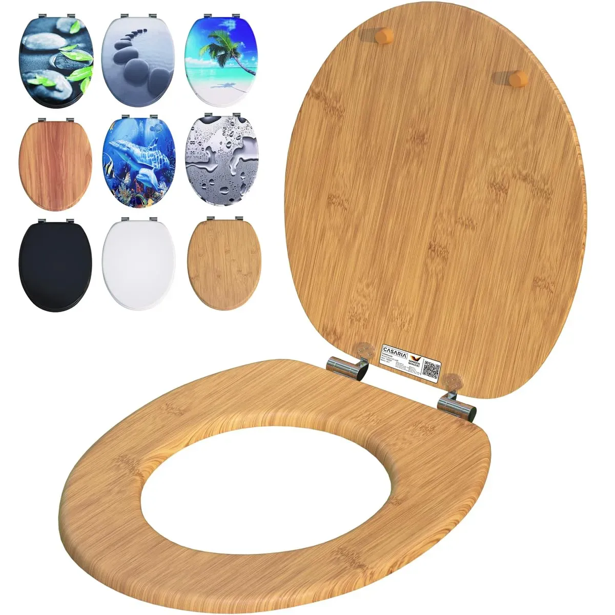 Kategorie: WC-Sitze - Sanicomfort - GTIN:4002071282244 - Massiver Bambus-WC-Sitz mit Soft-Close Natürlich schöner Toilettendeckel aus echtem Bambus-Holz mit geräuschloser Absenkautomatik. Ideal für Familien und nachts kein Knallen, kein Stress. Umweltfreundlich, langlebig, hygienisch. Universelle Form & hohe Belastbarkeit Passend für Standard-WCs, ovale Toilettenschüsseln. Belastbar bis 150 kg dank robuster Echtholz-Konstruktion. Bambus ist feuchtigkeitsresistent und ideal für den täglichen Einsatz. Hochwertige Edelstahl-Scharniere Extra stabile Metallscharniere mit Anti-Rutsch-Funktion für festen Halt ohne Wackeln. Rostfrei und korrosionsbeständig für maximale Stabilität, Sicherheit und lange Lebensdauer im Badezimmer. Pflegeleicht & antibakteriell Die glatte Bambus-Oberfläche ist hygienisch, leicht zu reinigen und von Natur aus antibakteriell. Mit stilvoller Holzmaserung ist dieser WC-Sitz eine elegante Alternative zu klassischen Kunststoff-Modellen. Express-Montage Schneller Einbau mit geliefertem Werkzeug mit komplettem Montageset sofort startklar für Ihr Badezimmer. Farben werden individuell sehr unterschiedlich wahrgenommen, die Darstellung variiert zudem je nach genutzter Computerhardware. Farbabweichungen zwischen Abbildung und realem Artikel sind deshalb unvermeidlich. Da es sich um ein Naturprodukt handelt, kann es bei der Verarbeitung zu farblichen Abweichungen zwischen den einzelnen Chargen kommen. Diese Unterschiede entstehen durch die jeweilige Sorte und ... Ein solider WC-Sitz aus MDF mit doppelter Absenkautomatik und rostfreien Metallscharnieren, der bis 175kg belastbar ist. ![]() ![]() CASARIA Toilettendeckel mit doppelter Absenkautomatik MDF rostfreie Metall Scharniere WC Sitz 175kg Belastbar Antibakteriell Toilettensitz Bambus