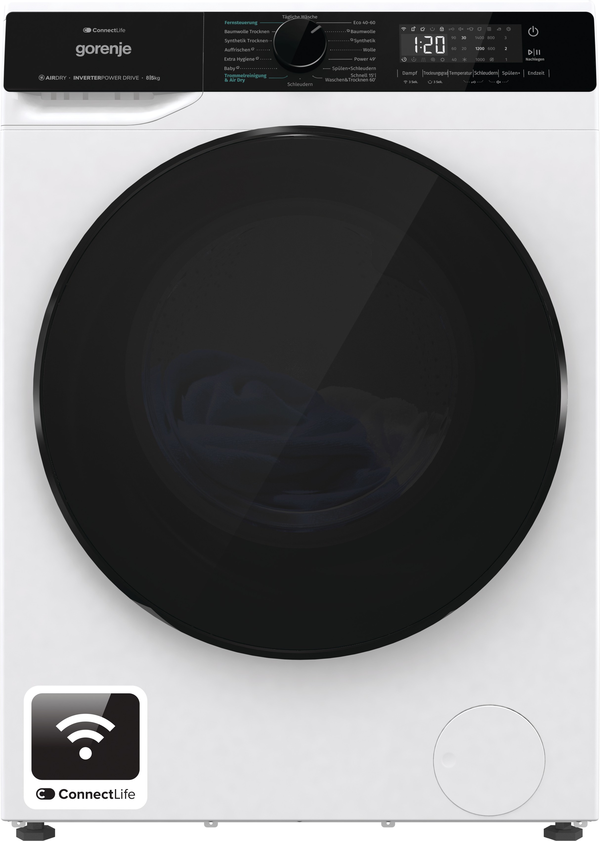 Zustand: Neu - Waschmaschinen - Gorenje - 20015776 - EAN: 3838782970214 - Energieklasse A-30%: Profitieren Sie von ausgezeichneten Kosteneinsparungen und Umweltvorteilen mit einer bemerkenswerten Reduzierung des Energieverbrauchs um 30 %, die den Industriestandard für die A-Klasse übertrifft - eine intelligente, nachhaltige Wahl für umweltfreundliche Lösungen. SterilTub: Das Waschen mit Waschpulver bei niedrigeren Temperaturen kann zu idealen Bedingungen für die Entwicklung von Bakterien führen, die wiederum einen üblen Geruch Ihrer Wäsche verursachen können. Das SterilTub-Programm beseitigt alle Bakterien im Inneren der Maschine und sorgt dafür, dass Ihre Wäsche immer frisch riecht. AirDry: Die AirDry-Funktion hält die Gerüche von Ihrer Waschmaschine fern. Dank dieser Funktion wird der Waschmittelbehälter, die Trommel und die Türdichtung vollständig getrocknet, um Ihre Geräte ohne zusätzlichen Aufwand Ihrerseits sauber und hygienisch zu halten. AllergySteam: Schützen Sie Ihre Familie vor Allergien mit der intensiven Hitze des Dampfes. Er entfernt effizient Allergene wie Hausstaubmilben und Tierhaare, ohne Ihre Kleidung zu beschädigen. ConnectLife: Vereinfachen Sie Ihr Leben und nutzen Sie alle Möglichkeiten zur Steuerung und Kontrolle Ihres Waschtrockners per App auf Ihrem Mobilgerät. Fernsteuerung, mobile Benachrichtigungen und Ticketing sind Funktionen, die Ihnen helfen, alle Vorgänge reibungsloser und schneller zu verwalten, egal wo Sie sind. - bei Amazon.de ![]() ![]() GORENJE Waschtrockner WD2PA854ADW/DE, 8 kg, 5 kg, 1400 U/min, Energieklasse A-30% weiß