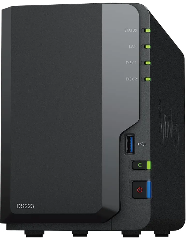 Kategorie: NAS Server - Synology - GTIN:4063448986905 - Zentraler Datenspeicher Dateisystem der nächsten Generation Sichere Freigabe und Synchronisierung Unkomplizierte Datensicherung Vielseitige Kameraüberwachung - 298,89 Euro bei Amazon Marketplace CE - gefunden von billiger.de Dieses Synology DS223 Bundle bietet eine solide Leistung für ein 2-Bay NAS-System mit zwei 4TB WD Red Plus HDDs. ![]() ![]() Synology DS223 2-Bay Diskstation NAS (Realtek RTD1619B Quad-Core 2GB Ram 1xRJ-45 1GbE LAN-Port) Bundle mit 2 x 4TB WD RED Plus HDD (WD40EFPX - 68C6CN0)