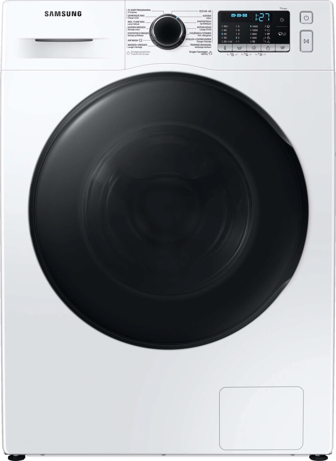 Samsung - EAN: 8806090607189 - Samsung WD81TA049BE Waschtrockner8 kg Waschen/ 5 kg Trocknen - 14 Waschprogramme Highlights ecobubble Die innovative Samsung ecobubble Technologie erzeugt einen speziellen Schaumpolster, mit dem Ihre Kleidung bereits ab 15 C eindrucksvoll gereinigt wird. Schon vor dem Waschgang aufgelöst, entfaltet das Waschmittel ohne Verzögerung seine ganze Kraft und Sie sparen Zeit und Energie - bei gleicher WaschleistungHygiene-Dampfprogramm Während des integrierten Dampfzyklus durchdringt Dampf vom Trommelboden aus Ihre Wäsche und verbessert die Reinigungsqualität. Hierdurch werden Bakterien, Allergene und eingetrockneter Schmutz entferntDigitaler Inverter Motor Der Motor arbeitet ohne Kohlebürsten und dadurch besonders leise und effizient ProgrammeEco 40-60Waschen & TrocknenAir Wash15 Min schnelle WäscheXXL WäscheBaumwolleMischwäschePflegeleichtTrommelreinigungHygiene DampfOption Intensiv kaltSpülen & SchleudernFeinwäscheWolle/FeinwäscheBaumwolle TrocknenPfleigeleicht Trocknen OptionenTemperaturauswahl 90-60-40-30-20-kaltEinstellung der Schleuderdrehzahl:1400-1200-1000-800-400 kein SchleudernWaschoptionen: Vorwäsche/Einweichen/Intensiv/ Technologische MerkmaleAirWashAqua StopOption Eichweichen ecoBubble TechnologieKindersicherungEndzeitvorwahlTrommelreinigungTrommel Type DiamondOption Intensiv Leck SensorDigital Inverter MotorOption Vorwäsche Option 15 Min schnelle Wäsche TrockenstufeUmdrehungen pro Minute 1400 Selbstreinigende SchubladeHygiene ... ![]() kaufland.d e Samsung WD81TA049BE/EG Waschtrockner, 8/5 kg, 1400 U/min, Ecobubble, Air Wash