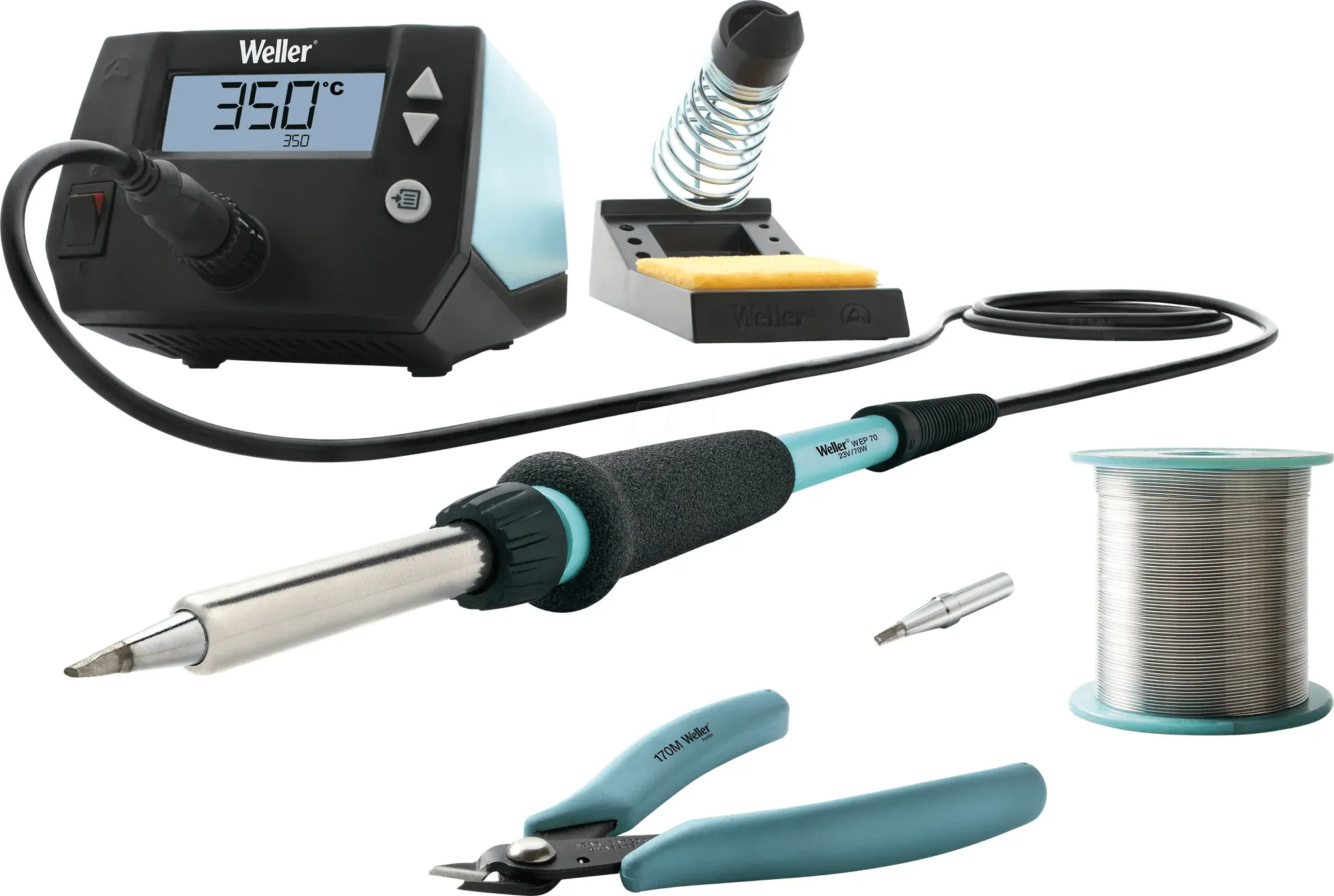 Auf Lager Versand durch AmazonWeller WE 1010 (T0053298390) Bildungs-Kit 70 W/230 V Digital 1-Kanal-Lötstation mit 2 Lötspitzen, Seitenschneider und Lotdraht, Temperaturbereich 100°C ? 450°C, Blau