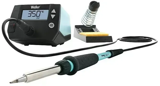 Weller - EAN: 04003019439973 - Weller Efficiency Line - die stärkste Lötstation in ihrer Klasse!leistungsstark, benutzerfreundlich und kosteneffizienthohe Leistung - Lötarbeiten werden schnell erledigteinfache Handhabung des Lötkolbens intuitive Navigationgeringe Betriebskostenmaximale Zuverlässlichkeit und SicherheitESD sichere Lötstation, Lötkolben undhitzebeständinges SilikonkabelTemperaturstabilität und -verriegelungschützt Lötspitze und Bauteilgleichbleibend hoher Qualitätsprozessmit gleichbleibenden LötergebnissenStandby und automatischer Setbackschützt Werkzeug und UmweltPasswortschutz sichert alle EinstellungenSet, Lötstation + Lötkolben WEP 70 + Lötspitze ET A (1,6 mm Meißelform) und Ablage PH 70digitale LCD-Anzeige70 W Powerbenutzerfreundliche Navigationhitzebeständiges Kabelgeeignet für ET-Spitzen siehe Zubehör - bei reichelt.de - aus Yadore Produktdaten Diese digitale Lötstation ist ESD-sicher und bietet eine hohe Maximaltemperatur, was sie für vielfältige Lötaufgaben geeignet macht. ![]() ![]() Weller Lötstation digital - ESD sicher (Höchsttemperatur: 450 °C