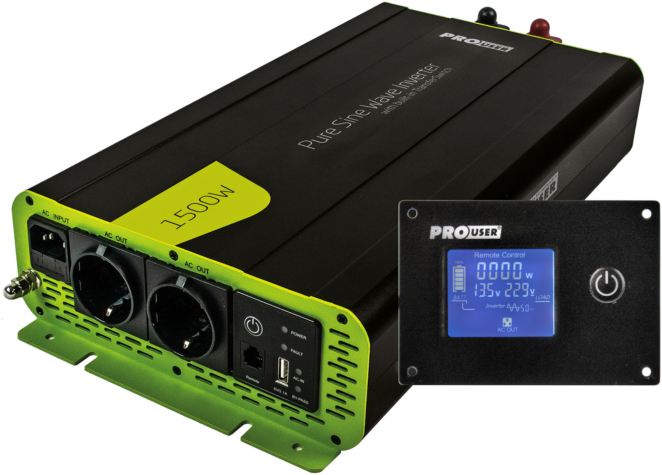 Prouser - EAN: 8717809191359 - Erzeugt aus einer 12 V Batteriespannung eine 230 V Wechselspannung. Reine Sinuswelle - auch für empfindliche Geräte geeignet. Ideal für mobile Anwendungen im Auto, Wohnwagen, usw. um 230 V Verbraucher anzuschließen., Stromversorgung: Art... - bei baur.de - aus Yadore Produktdaten ![]() Wechselrichter PROUSER 'Spannungswandler Sinus 1500W', schwarz, B:22cm H:9cm L:37cm, Wandler
