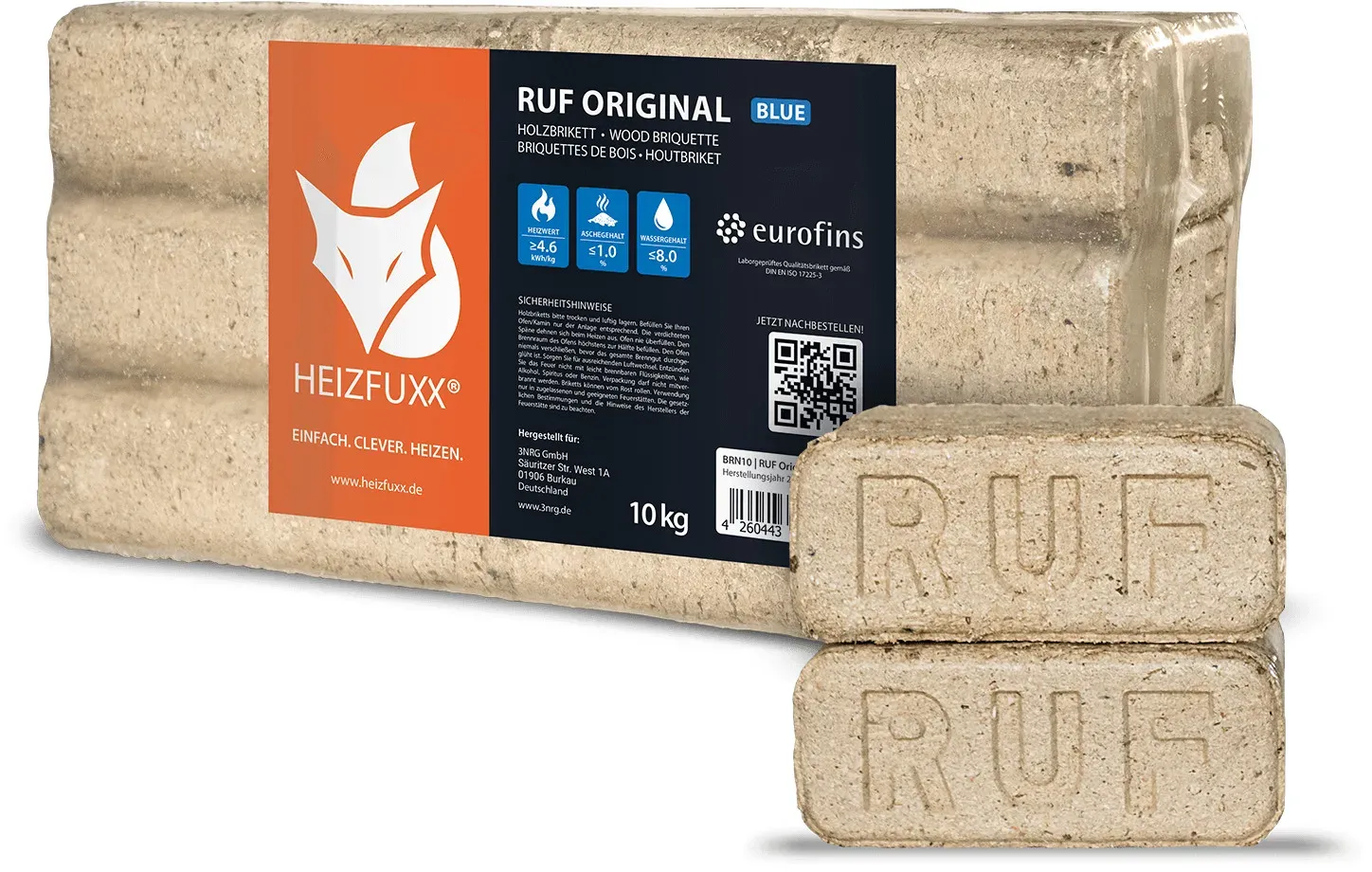 3 Händlerangebote bei billiger.de - Kategorie: Brennstoffe - Heizfuxx - Die Späne der RUF Original Blue Weichholzbriketts werden unter hohem Druck in ihre typische eckige RUF-Form gepresst. Bei der Produktion wird komplett auf chemische Bindemittel verzichtet. Damit sind die RUF Weichholzbriketts ein umweltfreundlicher und CO2-neutraler Festbrennstoff. Die Briketts sind schnell entflammbar und haben einen geringen Aschegehalt. Durch das schnelle Verbrennen wird sofort Energie freigesetzt und der Raum in kürzester Zeit gleichmäßig erwärmt. Die Briketts lassen sich hervorragend stapeln und können so platzsparend gelagert werden. RUF Original Blue entsprechen der europäischen Richtlinie DIN EN ISO 17225 -3 und stammen aus kontrollierter Herstellung. - GTIN:4260443342181 ![]() ![]() 20 kg - Briketts Brennstoffe eBay Weichholzbriketts 2x10 kg