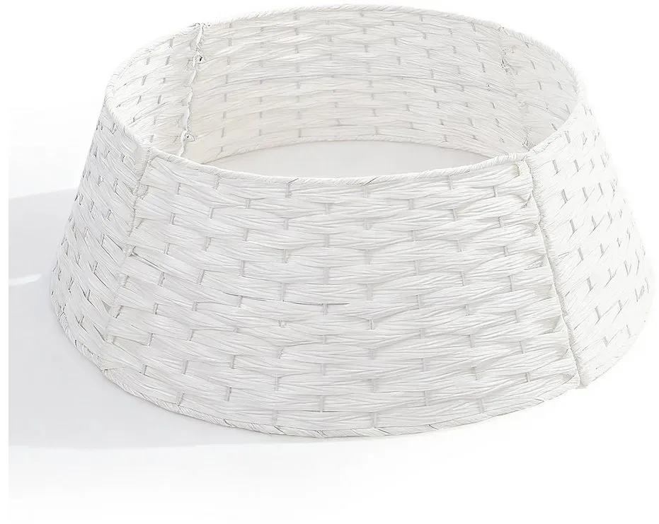 lieferbar-in 2-3 Werktagen bei dirSalcar Weihnachtsbaumdecke Weihnachtsbaumdecke Rattan Weihnachtsbaumrock aus Poly-Rattan, Weiß, Durchmesser oben: 50 cm, Durchmesser unten: 66 cm. Höhe: 22 cm 66 cm x 22 cm