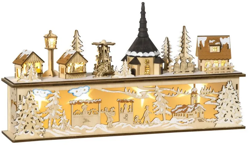 lieferbar-in 6-7 Werktagen bei dirautolock Dekoobjekt Weihnachtsdorf, 10 LEDs, warmweißes Licht, 45 x 10 x 25 cm, Holzdekor, Weihnachtsdekoration für Feiertagstreffen Weihnachten beige