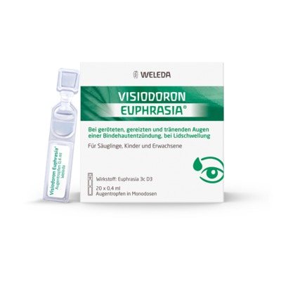 Weleda - Anwendungsgebiet von Visiodoron Euphrasia AugentropfenVisiodoron Euphrasia Augentropfen schnell wirksam bei geröteten, gereizten und tränenden Augen einer Bindehautentzündung, auch während der Allergiesaison. Reizzustände der Augenbindehaut gehören zu den häufigsten Augenproblemen. Der in Visiodoron Euphrasia Augentropfen enthaltene Heilpflanzenauszug aus Augentrost wirkt lindernd bei tränenden und geröteten Augen, beruhigt unangenehmes Brennen und Jucken und lässt leichte, nicht infektiöse Bindehautentzündungen rasch abklingen. Nach Rücksprache mit dem Arzt sind sie auch für die langfristige Anwendung geeignet, zum Beispiel während der Allergiesaison. Visiodoron Euphrasia Augentropfen sind frei von Konservierungsstoffen und auch für Kontaktlinsenträger geeignet. Vorteile der Einzeldosen: Praktisch für unterwegs Für Familien, wenn mehrere Personen das Produkt verwendenFür den sporadischen Bedarf und kurze Therapiezeiten 2 verschiedene Packungsgrößen (10x0,4 ml 20x0,4 ml) Wie entsteht eine nicht-infektiöse Bindehautentzündung Im Gegensatz zur einer eitrigen, infektiösen Bindehautentzündung, die in der Regel durch Bakterien verursacht wird, gehören bei der nicht-infektiösen Bindehautentzündung Allergien und andere äussere Reize zu den häufigsten Ursachen (z.B. Sonneneinstrahlung, Staub, Rauch, Pollen oder Chlor in Hallenbädern). Eine nicht-eitrige Bindehautentzündung kann auch im Zusammenhang mit einer Erkältung oder einem grippalen Infekt auftreten. Ebenso kann ... ![]() ![]() WELEDA AG VISIODORON Euphrasia Augentropfen 20X0.4 ml 17935232