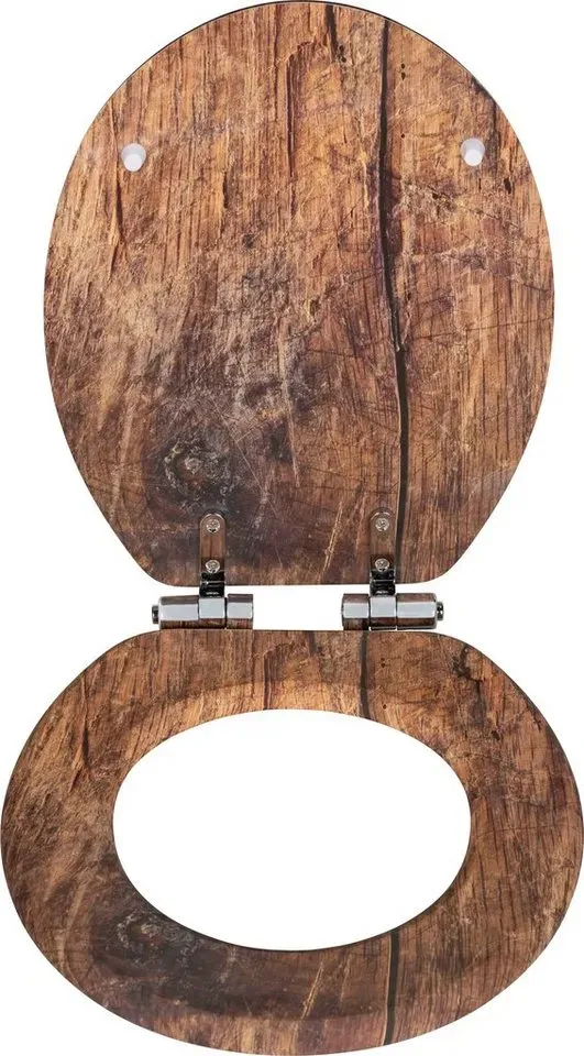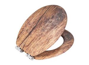 lieferbar-in 3-4 Werktagen bei dirWENKO WC-Sitz Rustic, aus FSC -zertifiziertem MDF, feuchtigkeitsresistent braun|silberfarben