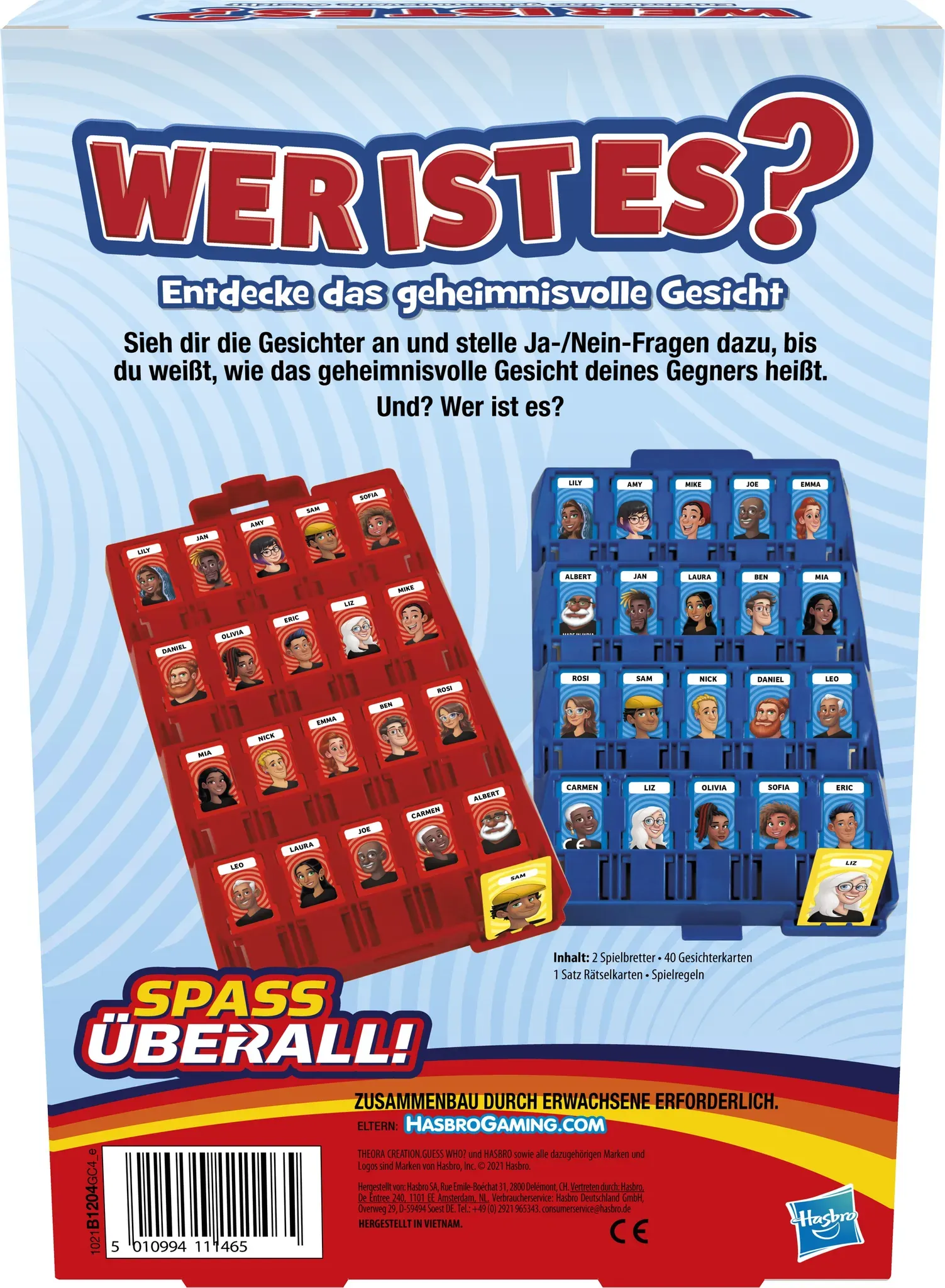 Zustand: Neu - Brettspiele - Hasbro Gaming - F6105 - EAN: 5010996187376 - DAS ORIGINAL-RATESPIEL: Wer wird zuerst den geheimnisvollen Charakter benennen? Finden Sie es mit dieser Ausgabe des Spiels Guess Who? heraus, einem beliebten Familienbrettspiel für Kinder ab n. RATEN SIE DIE GEHEIMNISVOLLE FIGUR: Die Kinder stellen abwechselnd clevere Ja- oder Nein-Fragen, um Figuren auszuschließen. Der erste, der eine geheimnisvolle Figur richtig errät, gewinnt KLASSISCHES GUESS WHO?-SPIEL: Erinnern Sie sich daran, als Kind das Brettspiel Guess Who? gespielt zu haben? Machen Sie neue Generationen mit dem Mystery-Brettspiel vertraut. AKTUALISIERTE CHARAKTERE UND BILDER: Diese Ausgabe des Kinderspiels Guess Who? enthält eine aktualisierte Besetzung exzentrischer Charaktere und Charakterbilder, die in früheren Versionen nicht zu sehen waren. EINFACH AUFZUBAUEN UND AUFZUBEWAHREN: Spielen Sie unterwegs! Mit leicht zu ladenden Rahmen, 1-Bewegungs-Aufbau und praktischen Klapphüllen ist dieses 2-Spieler-Spiel ein ideales Reisespiel für Kinder für Autofahrten, Flugreisen und mehr. - 8 Händler im amazon.de Marketplace Dieses Angebot ist eine gute Wahl für die originale Ratebrettspiel-Version, die für Kinder und Familien geeignet ist. ![]() ![]() Hasbro Gaming Rate mal, wer das ist? Originelles Ratebrettspiel für Kinder, Familienspiele für 2 Spieler, Geschenke für Kinder ab 6 Jahren