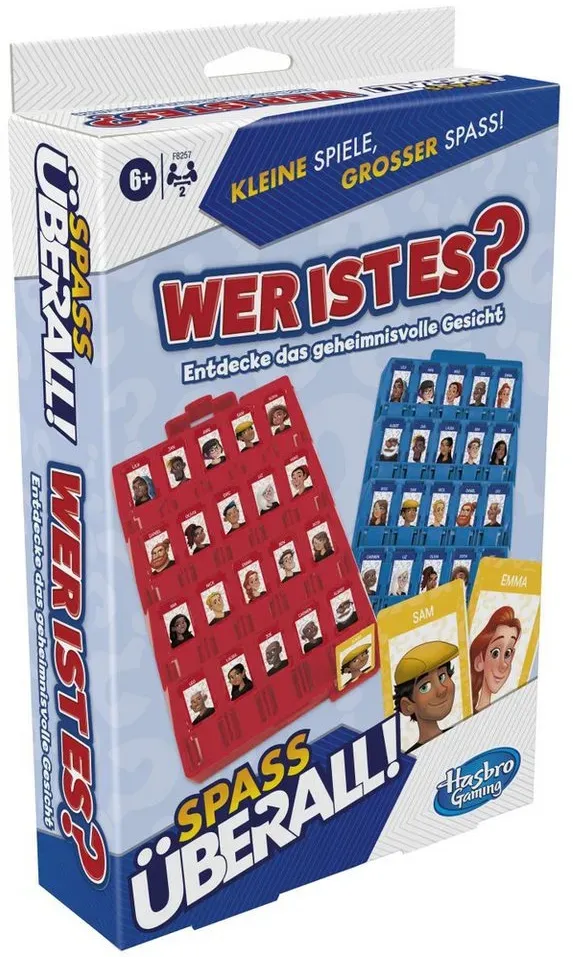 Zustand: Neu - Reise- & Kompaktspiele - Hasbro Gaming - F8257GC1 - EAN: 5010996164568 - KOMPAKTE VERSION VON WER IST ES: Das klassische Spiel im kompakten Format! Hier kommt das beliebte Wer ist es? in einer kleineren Größe für unterwegs. Geeignet für Kinder ab n und perfekt für Reisen oder Pausen zwischendurch EIN TOLLES SPIEL FÜR UNTERWEGS: Das einfach aufzubauende Strategiespiel Wer ist es? Kompakt für 2 Spieler ist eine abwechslungsreiche Freizeitbeschäftigung auf langen Autofahrten, im Flugzeug, im Zug, beim Camping und auf Reisen EINFACHE AUFBEWAHRUNG: Alle Spielsteine lassen sich bequem in der Spielbox verstauen, sodass das Spiel überallhin mitgenommen werden kann und Spieleabende mit der Familie fast überall stattfinden kann GROSSER RATESPASS: Wie in der klassischen Größe des Spiels Wer ist es? versuchen die Spieler, die mysteriöse Person des Gegners zu erraten. Durch clevere Fragen gilt es, das Rätsel zu lösen und das geheime Gesicht aufzudecken HERAUSFORDERUNG FÜR ALT UND JUNG: Wer ist es ist ein Spiel, das einfach immer Spaß macht und vielen unterschiedlichen Personen gespielt werden kann - ohne dass Langweile aufkommt KOMPAKTES REISESPIEL: Dieses abwechslungsreiche Familienspiel für unterwegs ist ein tolles Geschenk für Brettspielfans, Familien und Kinder. Eignet sich auch als kleines Geschenk und für die Sommerparty - bei Amazon.de Ein sehr preiswertes Angebot für die Kompaktversion, ideal für Reisen und schnellen SpielspaÃ?. ![]() ![]() Hasbro F8257GC0 - Wer ist es? Kompakt