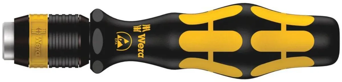 Zustand: Neu - Steckschlüssel-Schraubendreher - Wera Wera Werkzeuge GmbH - 05051272001 - EAN: 4013288103123 - Bit-Handhalter mit Rapidaptor Schnellwechselfutter für Bits mit 1/4' Außensechskantantrieb Mehrkomponentiger Kraftform Griff für schnelles und ergonomisches Verschrauben Mit Sechskantabrollschutz gegen Wegrollen Mit Rapidaptor-Technologie für blitzschnelles Wechseln der Klingen oder Bits Starker Dauermagnet hält die Bits bombenfest - bei Amazon.de Dieser Wera 813 R Bits-Handhalter ESD ist unmagnetisch und bietet Präzision für sensible Anwendungen. ![]() ![]() Wera 813 R Bits-Handhalter ESD, unmagnetisch - 05051273001