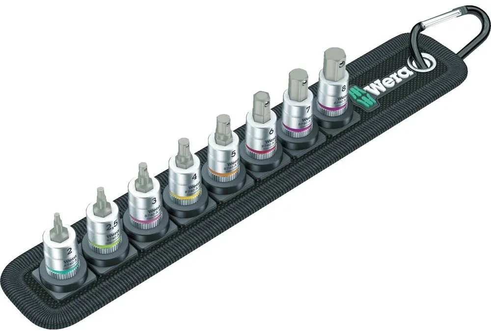 Schlüssel Steckschlüssel Handwerkzeug Satz Sortiment Steckschlüssel- Bit- Bohrer-Set Handwerkzeuge - EAN:4013288190772 - Der 9-teilige Wera Zyklop Steckschlüssel-Satz Belt 3 enthält besonders kurze, stabile Bit-Nüsse mit den Vorzügen der Wera Bit-Technologie, mit 'Take it easy' Werkzeugfinder mit Farbkennzeichnung nach Größen, zum einfachen und schnellen Finden des benötigten Werkzeugs. Der Satz bietet eine Haltefunktion für besonders komfortables Schrauben, mit reduzierter Gefahr des Schraubenverlustes beim Zuführen zum Werkstück. Der robuste Textilgurt (Belt) im typischen Wera Design fasst die 9 Steckschlüssel-Einsätze (1/4') auf engstem Raum. Ein leichtgängiger Drehmechanismus sorgt für einen sicheren klapperfreien Halt und leichte Entnahme der Nüsse. Er wird inklusive einem Karabinerhaken zur Befestigung geliefert, mit dem er an Gürtelschlaufen oder Taschen befestigt werden kann. Mit dem Vliesrücken und den Klettklebestreifen lässt er sich einfach z.B. an der Wand, am Regal, am Werkstattwagen und dem Wera 2go Werkzeugtransportsystem befestigen. - gefunden von Kelkoo Dieses 9-teilige TORX HF Bitnuss-Satz für 57.34 Euro ist eine weitere gute Option für TORX-Schrauben. ![]() ![]() Wera 05003882001 Belt A 3 TORX HF Zyklop Bitnuss-Satz Torx, mit Haltefunktion, 1/4"-Antrieb, 9-teilig