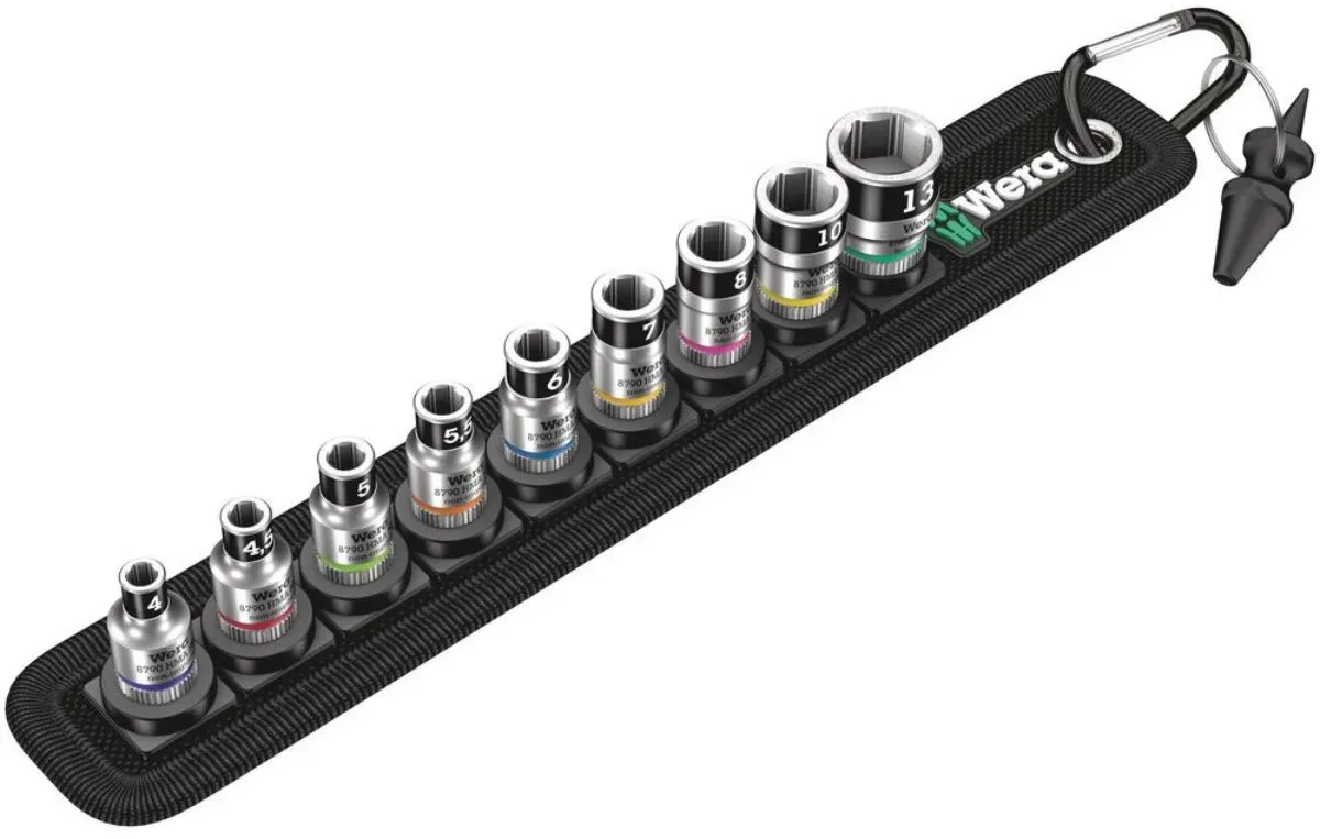 17 Händlerangebote bei billiger.de - Kategorie: Schraubenschlüssel - WERA - 8-teiliger Bitnuss-Satz auf robustem Textilgurt, 1 4' Bitnüsse mit den Vorzügen der Wera Bit-Technologie Bitnüsse mit Haltefunktion für Schrauben Leichtgängiger Drehmechanismus für sicheren Halt und leichte Entnahme der Werkzeuge Geeignet zur Befestigung an Wand, Regal, Werkstattwagen und Wera 2go System - GTIN:4013288190765 Dieses 9-teilige TORX HF Bitnuss-Satz für 56.90 Euro bietet eine umfassende Lösung für TORX-Anwendungen. ![]() Wera Belt A3 TORX HF Zyklop Bitnuss-Satz, 9-teilig, Steckschlüssel