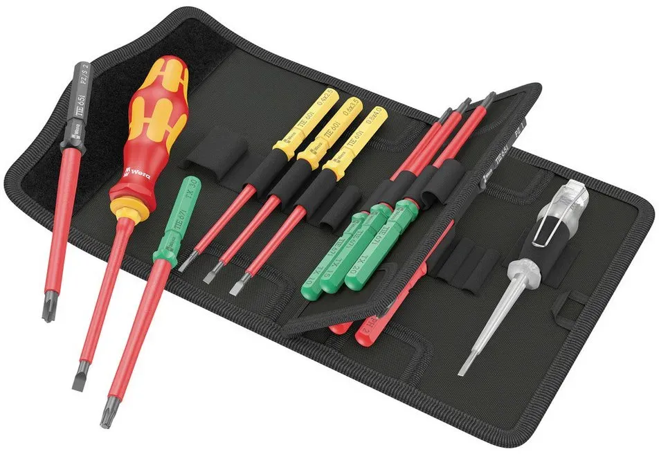 Zustand: Neu - Schraubendreher-Sets - Wera - 05006607001 - EAN: 4013288229922 - VDE-isolierter Kraftform Handhalter 817 VDE mit Abrollschutz Mit Sechskantabrollschutz gegen Wegrollen Stückgeprüftes Werkzeug gem. IEC 60900 bei 10.000 V In robuster Falttasche Geeignet für Wera 2go - bei Amazon.de Dieses Angebot ist mit 50.03 Euro eines der günstigsten für das 16-teilige Set und bietet ein hervorragendes Preis-Leistungs-Verhältnis. ![]() 342032 / Contorion Wera VDE-Wechselklingen mit Handhalter, Kraftform Kompakt VDE 16 Universal 1 Tool Finder, 16-teilig (05006607001)