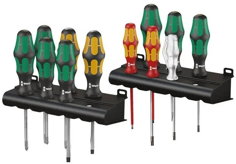 33 Händlerangebote bei billiger.de - Kategorie: Schraubenzieher - WERA - 12-teiliges Schraubendreher Allround-Set. Kraftform Plus Griff für angenehm ergonomisches Arbeiten, bei dem Blasen und Schwielen vermieden werden. Harte Griffzonen für hohe Arbeitsgeschwindigkeit, während weiche Griffzonen hohe Drehmomentübertragung ren. Teilweise mit Lasertip: Die Spitze von Wera Lasertip-Schraubendrehern wird mit Laserstrahlen mikroskopisch fein aufgeraut. Diese raue Oberfläche \ beißt\ sich förmlich im Schraubenkopf fest. Das unbeabsichtigte Herausrutschen gehört der Vergangenheit an. - GTIN:4013288144225 Dieses Schraubendreher-Set ist ein Bestseller auf Amazon und bietet eine gute Auswahl an gängigen Schraubendrehern zu einem attraktiven Preis. ![]() ![]()