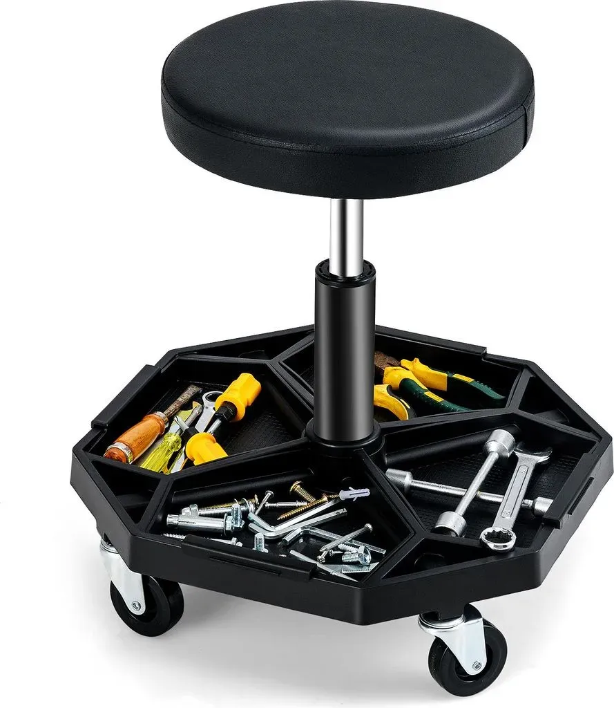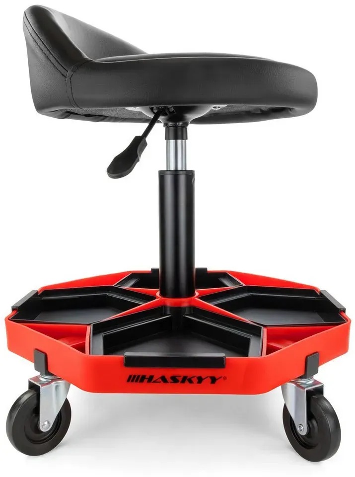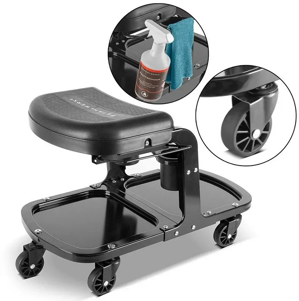 Verfügbarkeit: 2-5 Werktage - Kategorie: Werkstatteinrichtung - Goplus - GTIN:0015706635746 - Attribut:Einfache Höhenverstellung: Ausgestattet mit einer robusten pneumatischen Stange, bietet der Rollhocker eine starke Unterstützung mit einer maximalen Belastung von 150 kg. Und die Sitzhöhe lässt sich einfach mit dem Autolift-Hebel von 41 cm auf 56 cm einstellen, sodass Sie das Fahrzeug in der bequemsten Position reparieren können.Freies Schwenken und Bewegen: Der um 360° drehbare Sitz ermöglicht es Ihnen, schnell die Richtung für hocheffizientes Arbeiten zu ändern. Und 4 Universalräder machen es bequem, sich überall hin zu bewegen. Außerdem bietet Ihnen der schaumstoffgepolsterte Sitz viel Gemütlichkeit beim Sitzen und lindert effektiv Ihre Müdigkeit.Praktische Werkzeugablage: Der Rollhocker wird zusätzlich mit einer funktionalen Werkzeugablage geliefert, die in 4 Teile unterteilt ist. Und 1 von 4 Teilen ist ein magnetisches Chassis, das gut zu Metallwerkzeugen passt. Alle 4-Viertel-Chassis sind abnehmbar, sodass Sie jedes gewünschte Werkzeug leicht greifen können.Vielseitiger Rollsitz: Mit flexibler Einstellung und Bewegung ist dieser mechanische Rollsitz ein perfekter Helfer für Reparaturarbeiten. Er wird eine nützliche Ergänzung für Reparatur, Garage, Werkstatt, Lager und so weiter sein.Einfache Installation und Pflege: Der Mechaniker-Sitz ist recht einfach zu montieren, da er mit einer detaillierten Anleitung und allem erforderlichen Zubehör ... Dieser Werkstatthocker mit Rückenlehne und Höhenverstellung bietet zusätzlichen Komfort bei längeren Arbeiten. ![]() ![]() HASKYY Arbeitshocker HASKYY Werkstatthocker mit Rückenlehne, höhenverstellbar