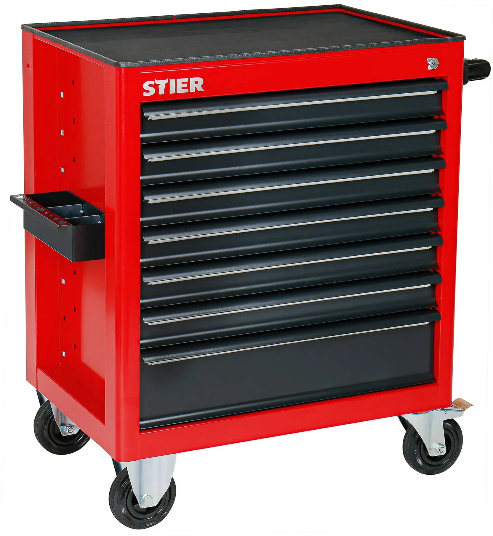 Kategorie: Werkstatteinrichtung - Stier - GTIN:4260438995750 - ORGANISATION UND ORDNUNG: Der perfekte Begleiter für jede Werkstatt. Mit dem Werkstattwagen sind alle erforderlichen Werkzeuge sofort am Arbeitsplatz vorhanden und es ist deutlich einfacher, als die benötigten Werkzeuge manuell heranzuholen. UMFANGREICHES ZUBEHöR: Der STIER Werkzeugwagen ist ausgestattet mit einem stabilen Rohrschiebegriff, einer geriffelten Gummiauflage und einem Dosenhalter. STABIL UND SICHER: Alle Schubladen des STIER Montagewagens sind einzelarretiert und zentralverriegelt. Ein kompletter Vollauszug der Schubladen ist auch bei hoher Belastung gegeben. MOBIL: Der STIER Werkzeugschrank überzeugt durch 2 Bockrollen und 2 Lenkrollen, welche bei Lieferung bereits montiert sind. Dank der mitgelieferten geriffelten Gummiauflage können Werkzeuge sicher und rutschfest auf dem Werkstattwagen abgelegt werden. STIER Produkte werden von Profis aus Handwerk und Industrie entwickelt und verbinden in höchstem Maße Leistungsstärke und Ergonomie. Kraftvoll. Widerstandsfähig. Langlebig. Tausende Kunden vertrauen dem besten Preis-Leistungs-Verhältnis. - 344,98 Euro bei Amazon Marketplace Home - gefunden von billiger.de Der Stanley Werkstattwagen mit 7 Schubladen ist eine gute Mittelklasse-Option für alle, die eine bewährte Marke und ausreichend Stauraum suchen. ![]() ![]()
