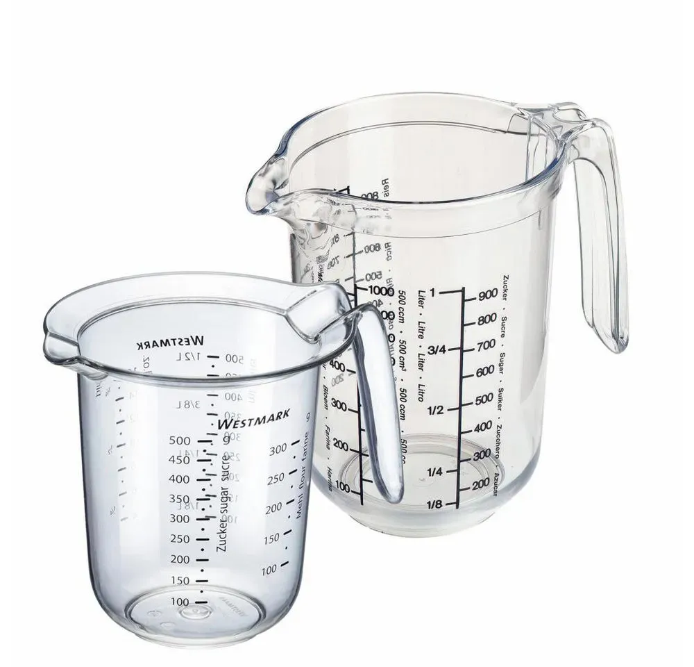 lieferbar-in 2-3 Werktagen bei dirWESTMARK Messbecher Set 2tlg., Messkannen 0,5 l und 1 l, mehrsprachige Messskalen, Gerda, SAN weiß